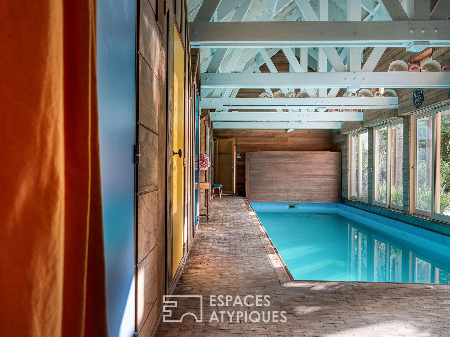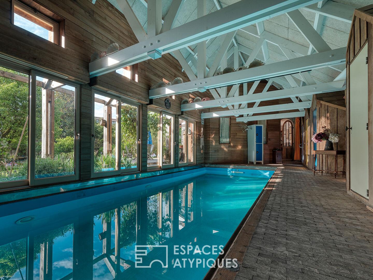 Maison familiale avec jardin paysager et piscine intérieure