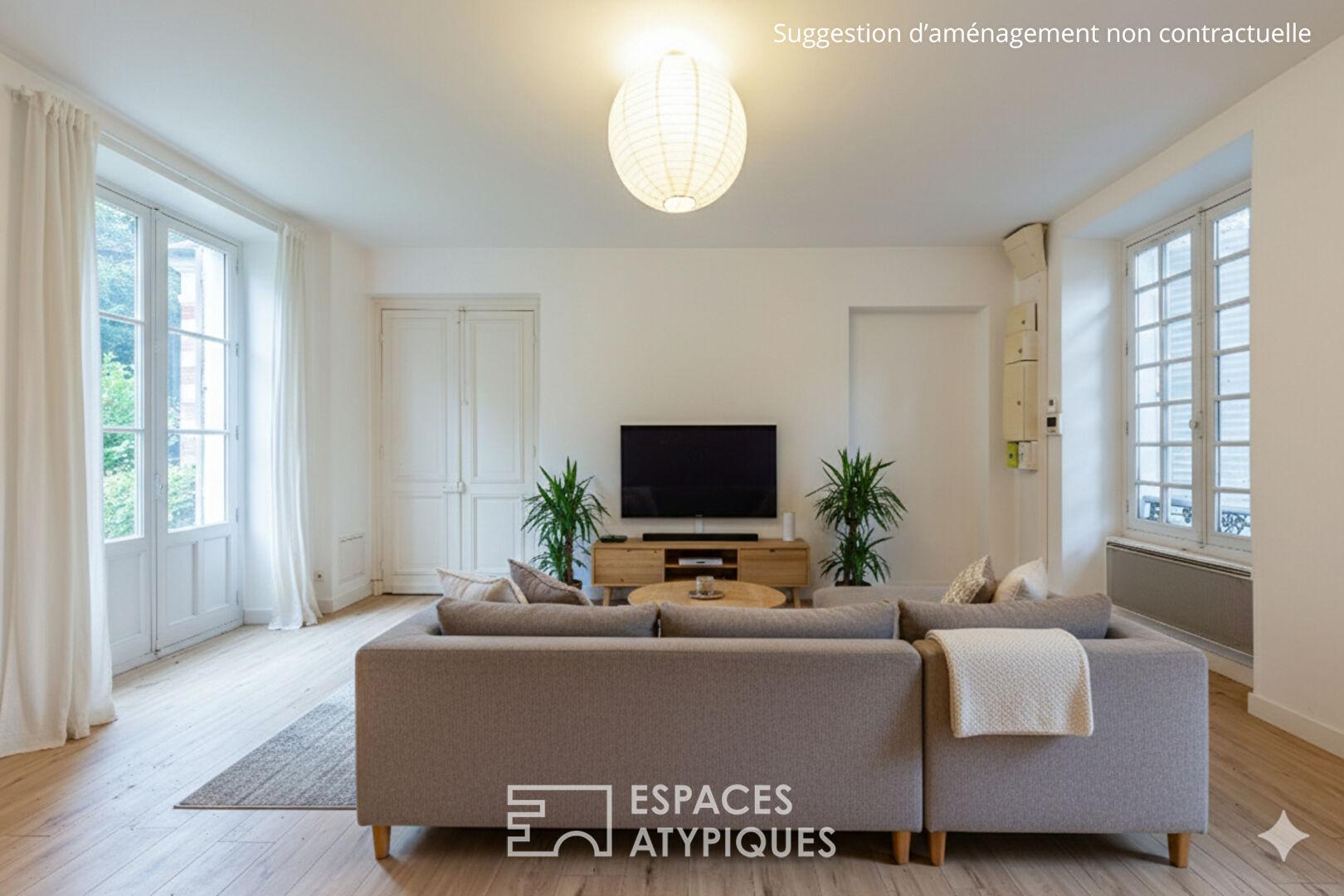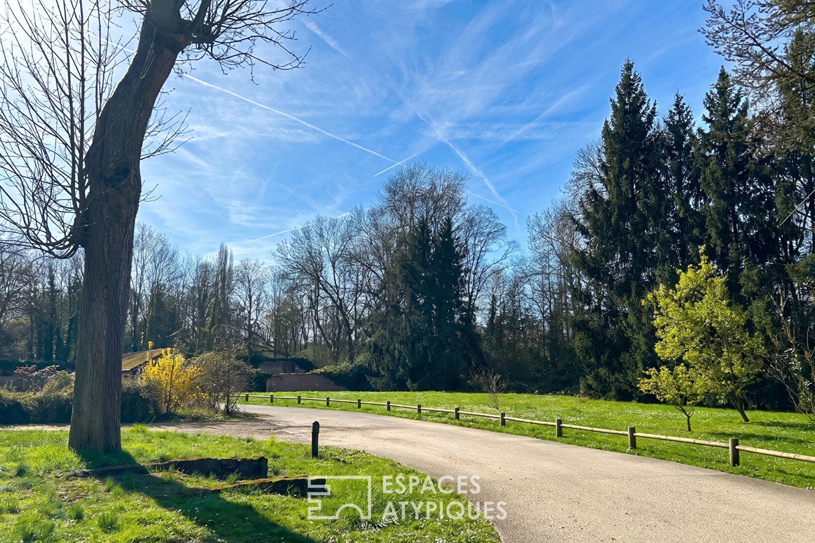 Au coeur de Crosne, cet appartement atypique de 94 m² (Loi Carrrez) prend place dans l’ancienne ferme seigneuriale datant de 1747 et classée monument historique au sein d’un domaine verdoyant de plus de 12 000 m².