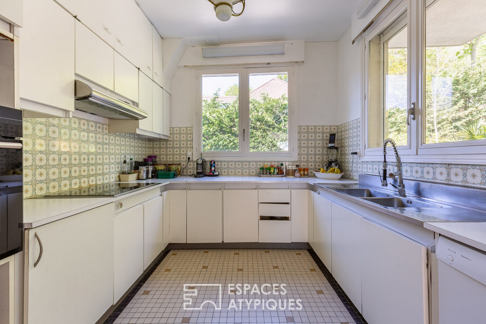 Située dans un quartier recherché et protégé de Bièvres, au milieu d’un terrain boisé associé à une végétation abondante et luxuriante, cette demeure de 400m2 (surface utile) a été construite en 1962 et a fait l’objet d’une complète rénovation avec des matériaux de qualité.