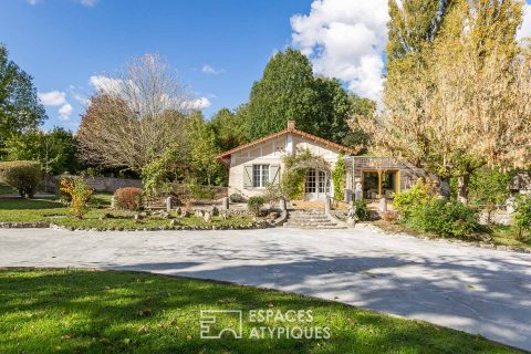 La maison historique a été rénovée et agrandie d’une partie contemporaine qui est prolongée par deux terrasses donnant accès au jardin.