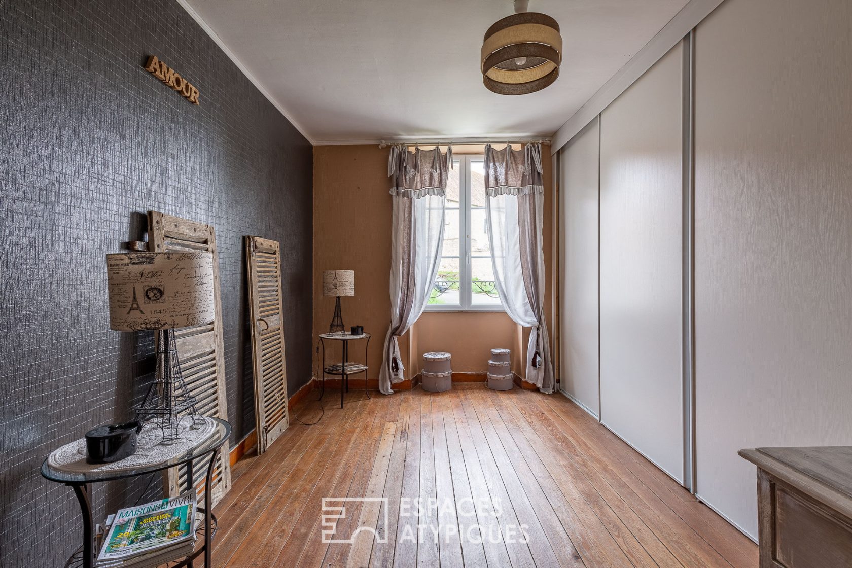 Les matériaux d’époque sont omniprésents : poutres, briques et tomettes anciennes et donnent du caractère à cette demeure.