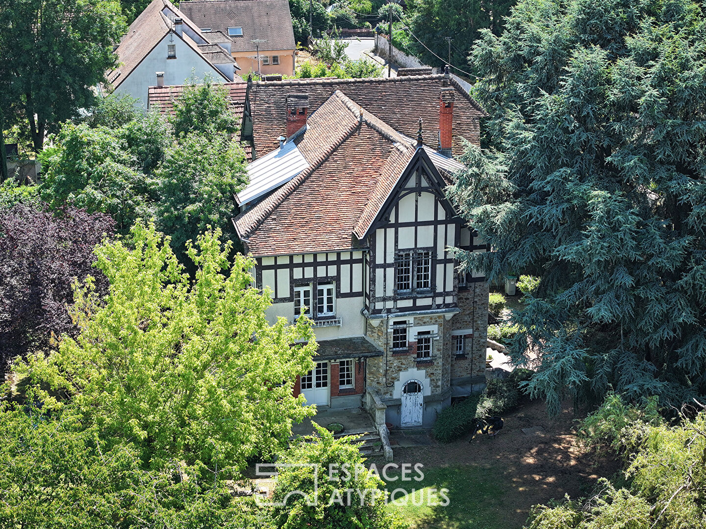 Située à Brunoy à 20km au sud-est de Paris, en plein coeur de ville, à l’ombre de ses arbres centenaires, la Villa « Maud », propriété de 1900, est classée au patrimoine historique. Cette demeure, entourée de 1200m2 de jardin clos de murs, se déploie sur près de 324m² au sol.