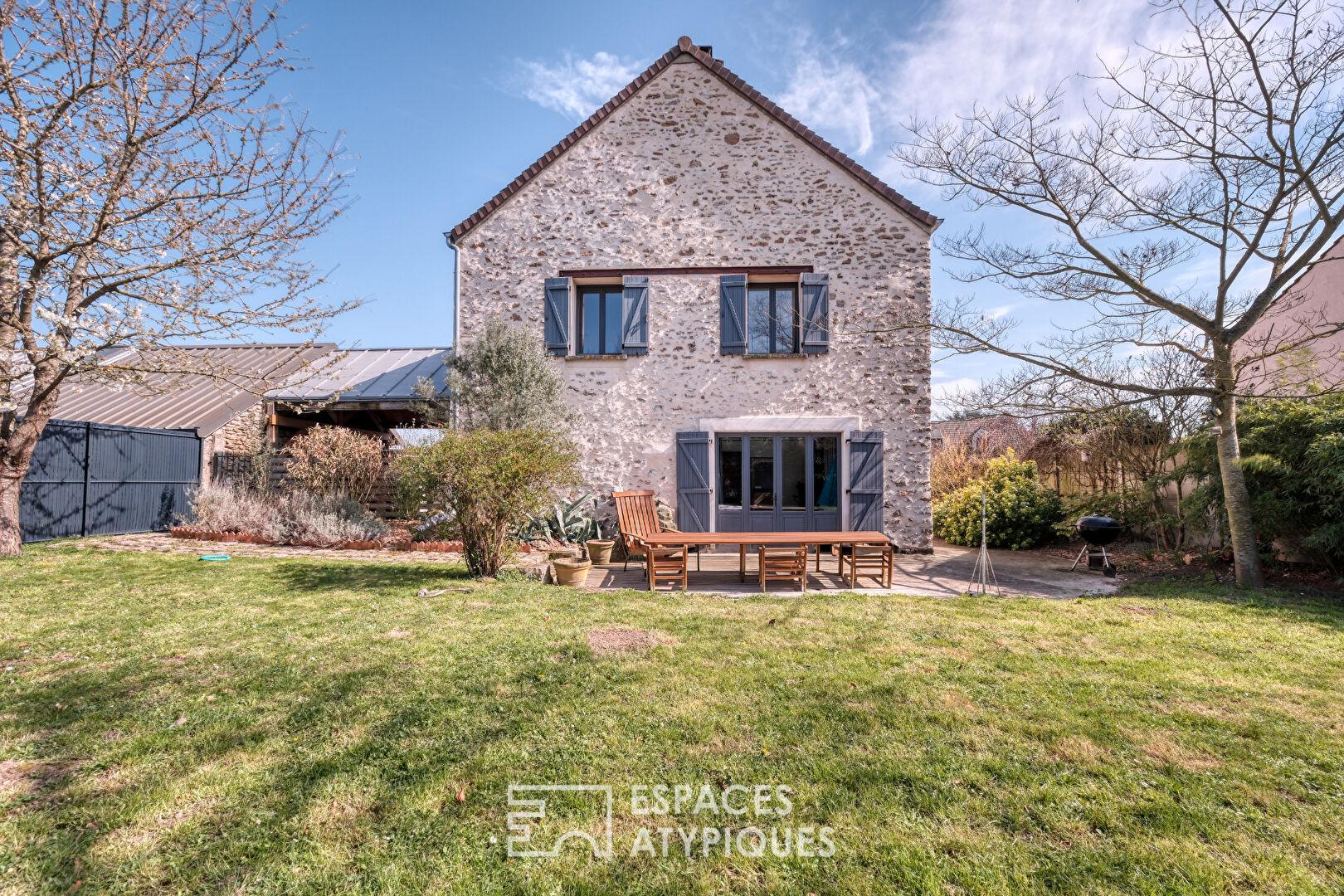 Située à Auvernaux, commune recherchée pour sa qualité de vie et son environnement naturel préservé, cette maison familiale développe une architecture singulière où volumes et lumière dialoguent harmonieusement.