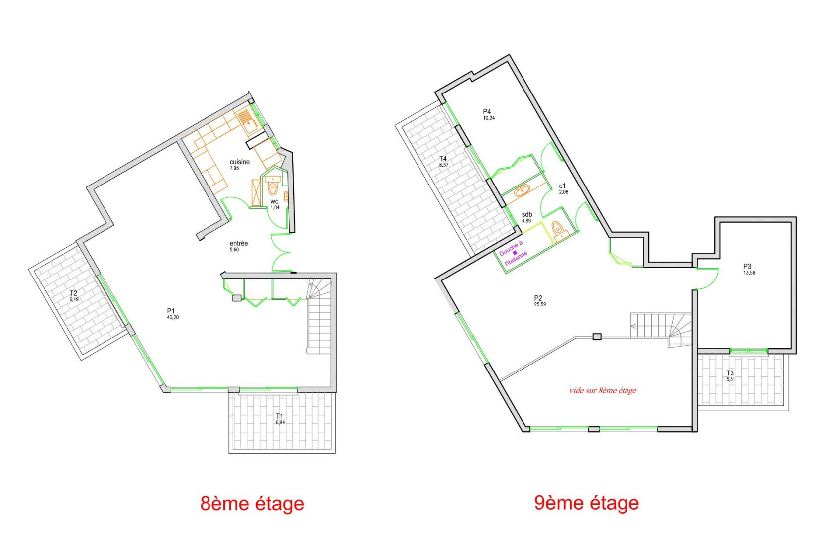 Duplex au dernier étage avec terrasses et vue sur Paris