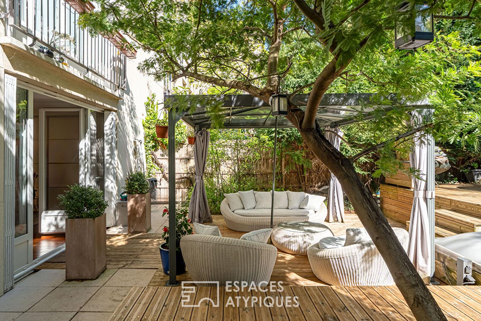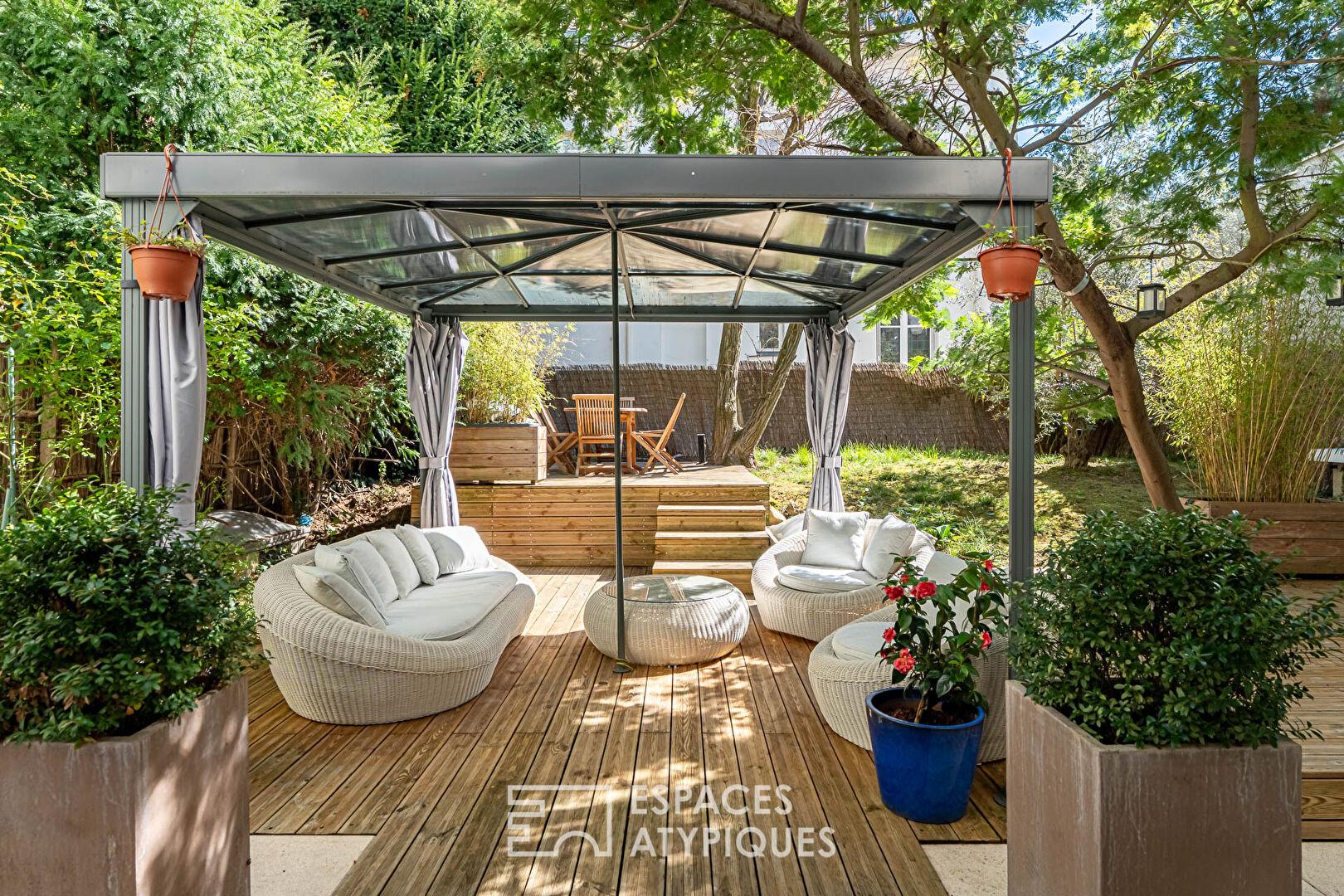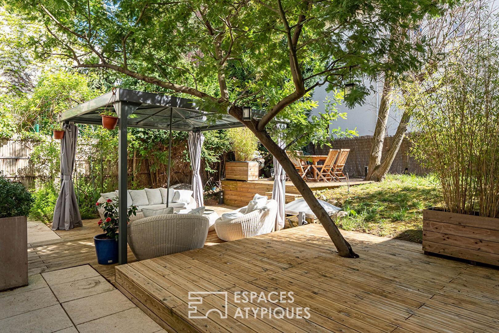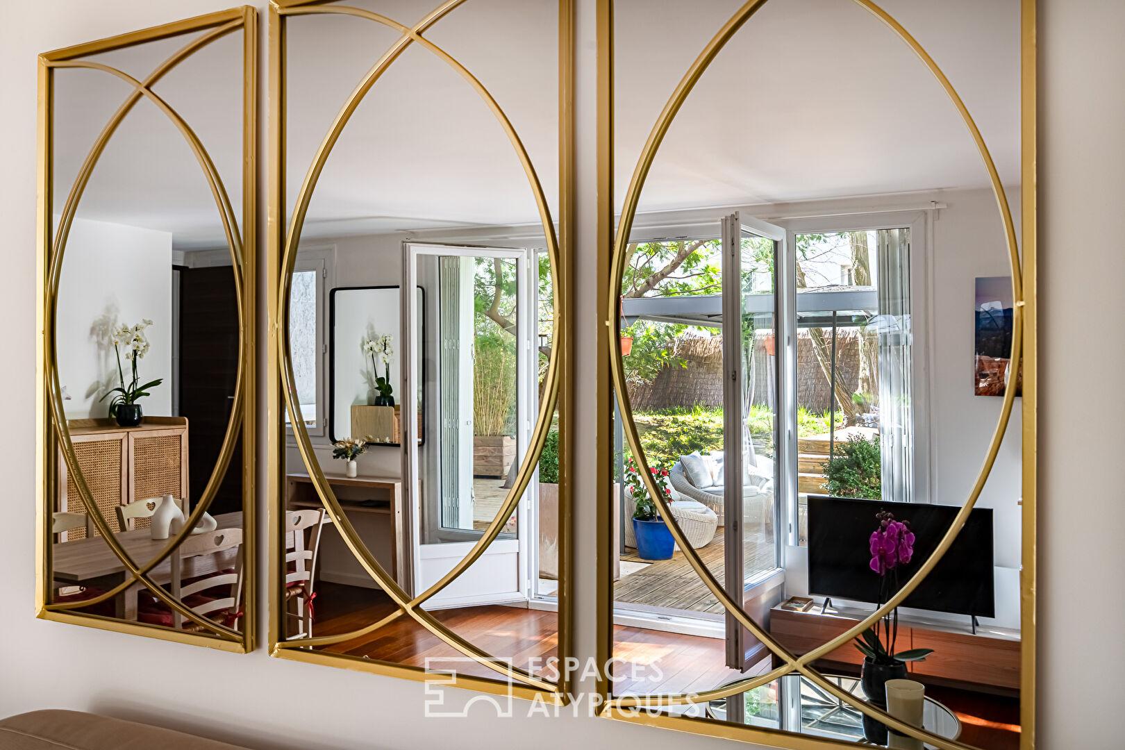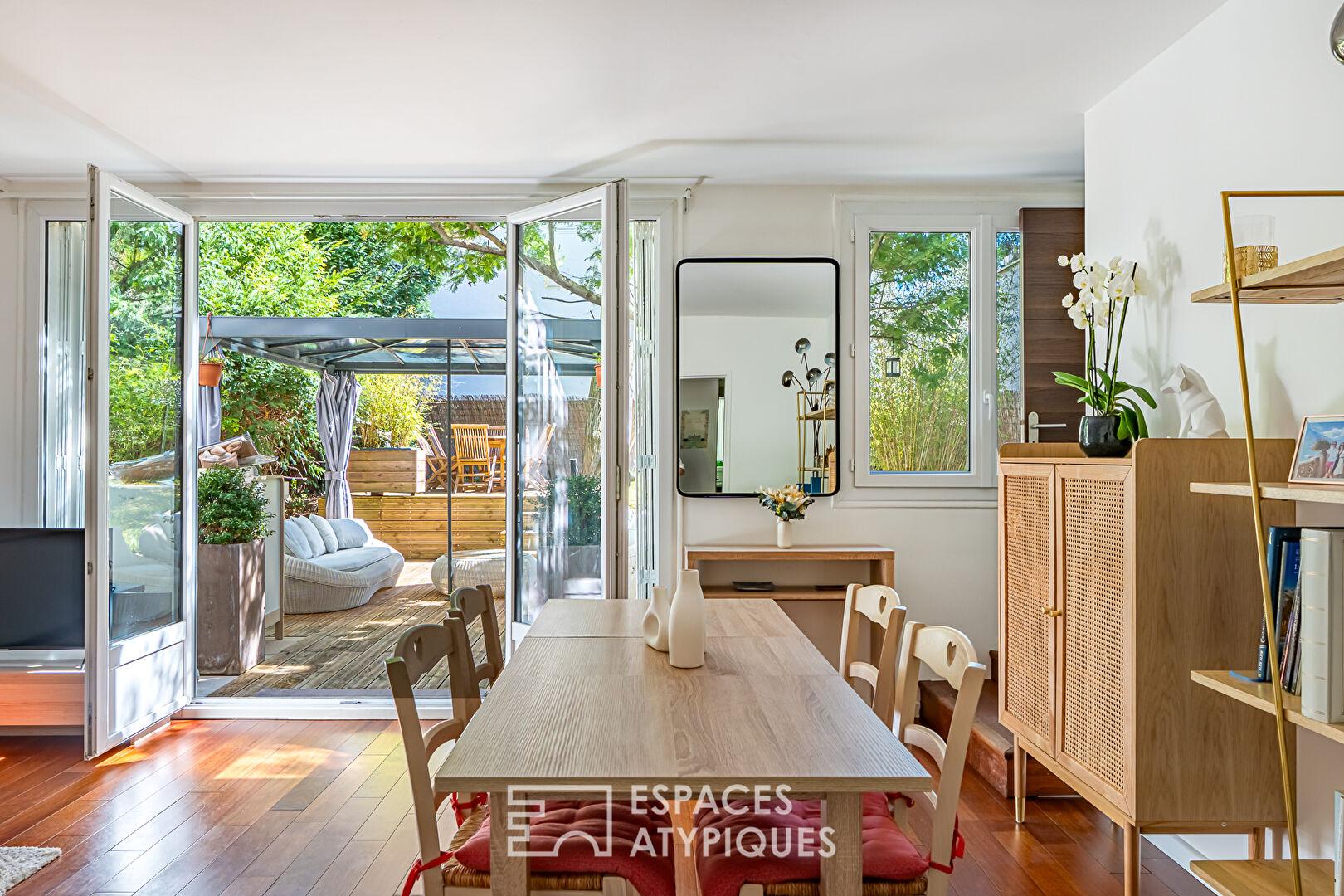 Situé au coeur de Bécon Village, à quelques pas de la gare, cet appartement traversant de 56 m² Carrez jouit d’une terrasse aménagée sur un jardin privatif d’environ 100 m². Rénové dans un esprit contemporain, ce bien propose une distribution optimisée et fonctionnelle des espaces. Son agrément extérieur exceptionnel offre un cadre de vie privilégié « comme une maison en ville ».