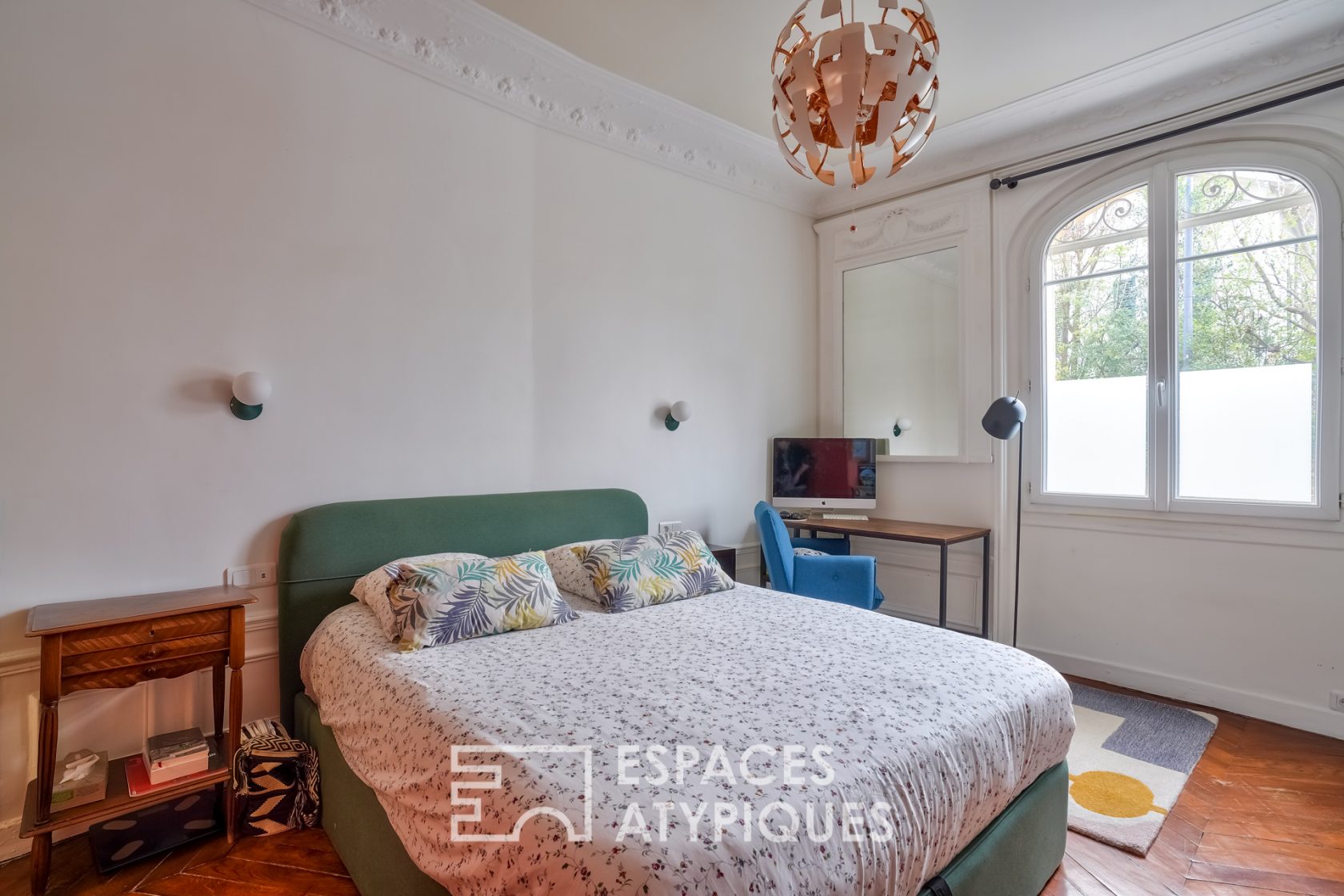 Idéalement situé au coeur du quartier Bécon Village, cet appartement familial de 80 m2 (79 m2 Carrez), alliant le charme de l’ancien et le confort du moderne, a été entièrement rénové et se trouve en rez-de-chaussée surélevé.
