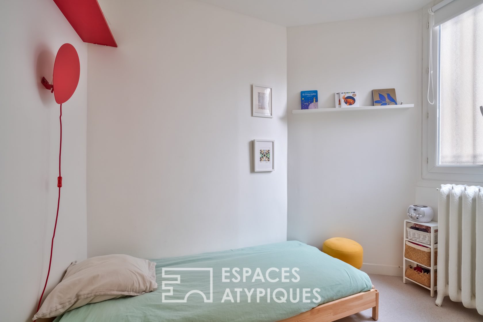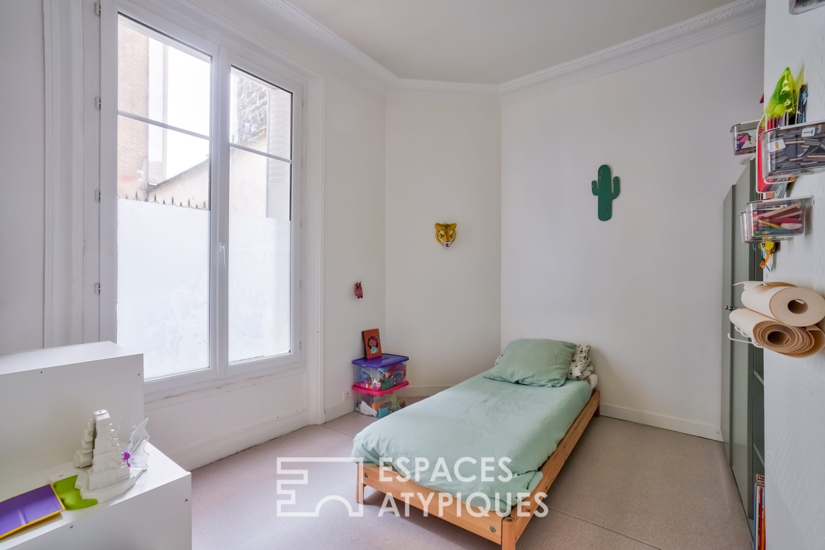 L’espace des enfants, donnant côté cour, est composé de deux chambres qui donnent toutes deux sur une pièce pouvant servir de salle de jeux commune ou bien de bureau. Une grande salle de bains avec baignoire et toilettes se trouve également au sein de cet espace.