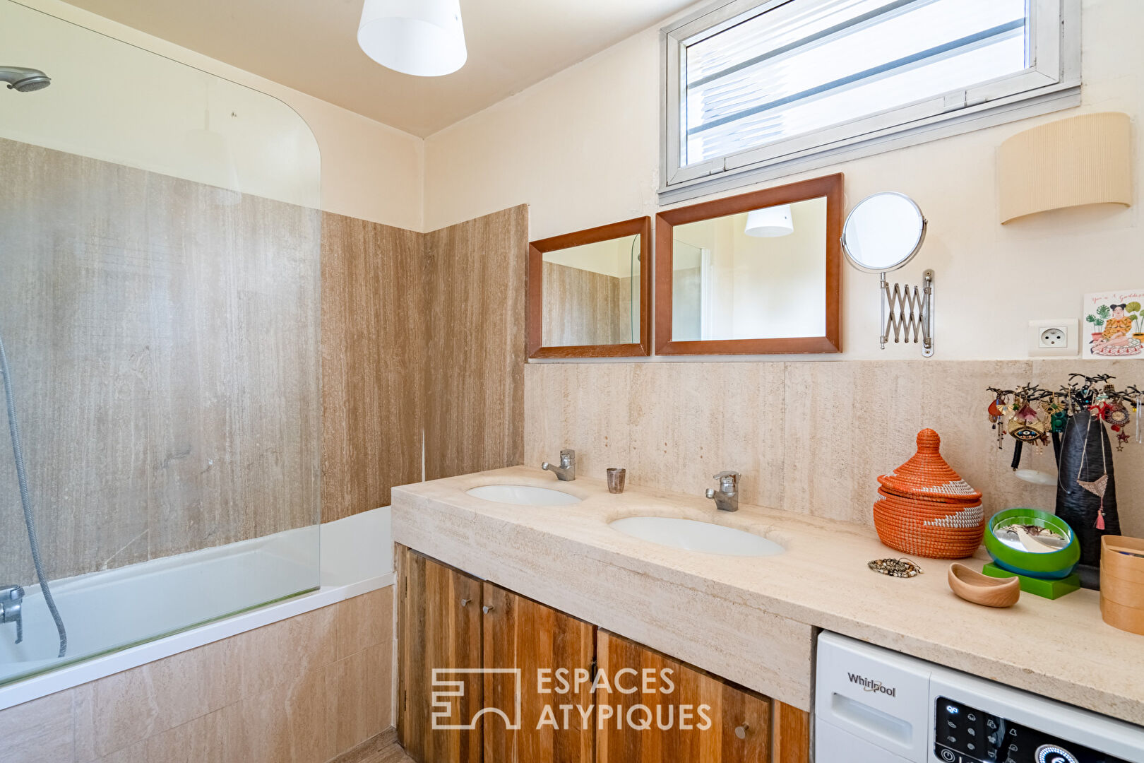 Dès l’entrée, spacieuse et fonctionnelle, le regard est tout de suite attiré vers une vaste pièce de vie de plus de 60 m2 qui s’organise en une salle à manger, un beau salon agrémenté d’une cheminée, et dans la continuité un espace bureau/détente/bibliothèque traversant. L’ensemble, baigné de lumière grâce à ses larges ouvertures, profite d’une agréable vue dégagée sur Ville-d’Avray et le parc de Saint-Cloud au loin, donnant une impression de dedans-dehors omniprésente . La cuisine indépendante, accessible depuis l’entrée, dispose d’une petite terrasse profitant de cette même vue.