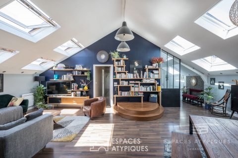 Situé dans un quartier résidentiel de Montreuil, cet appartement intégralement mansardé offre une surface totale de 142m2 (128m2 carrez).