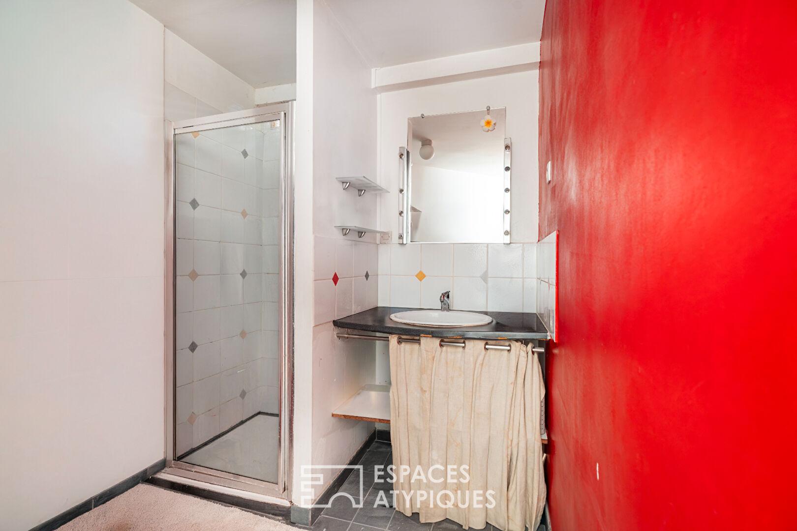 Ces volumes peuvent aisément être réinventés selon les besoins : espace professionnel, atelier, salle de loisirs ou suite indépendante. Une mezzanine surplombant cet ensemble est actuellement utilisée en zone de stockage.