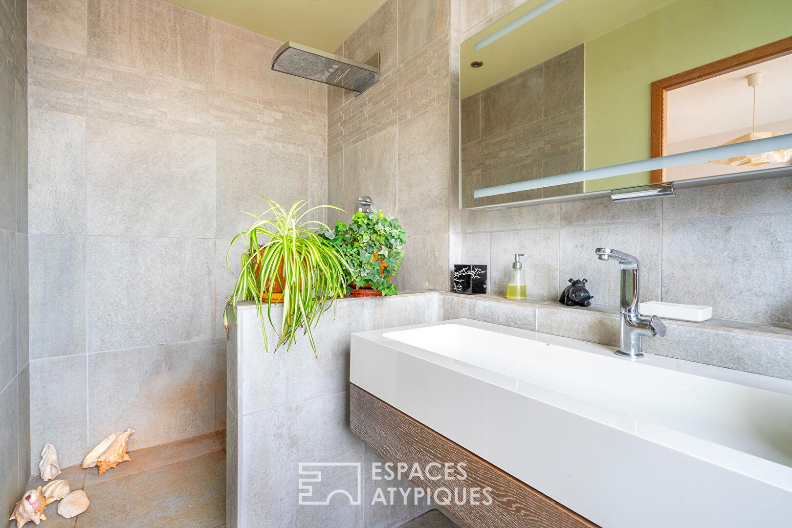 Ce lieu de vie a été conçu avec des matériaux de qualités et des aménagements sur mesure, notamment une pompe à chaleur air/air pour un confort optimal.