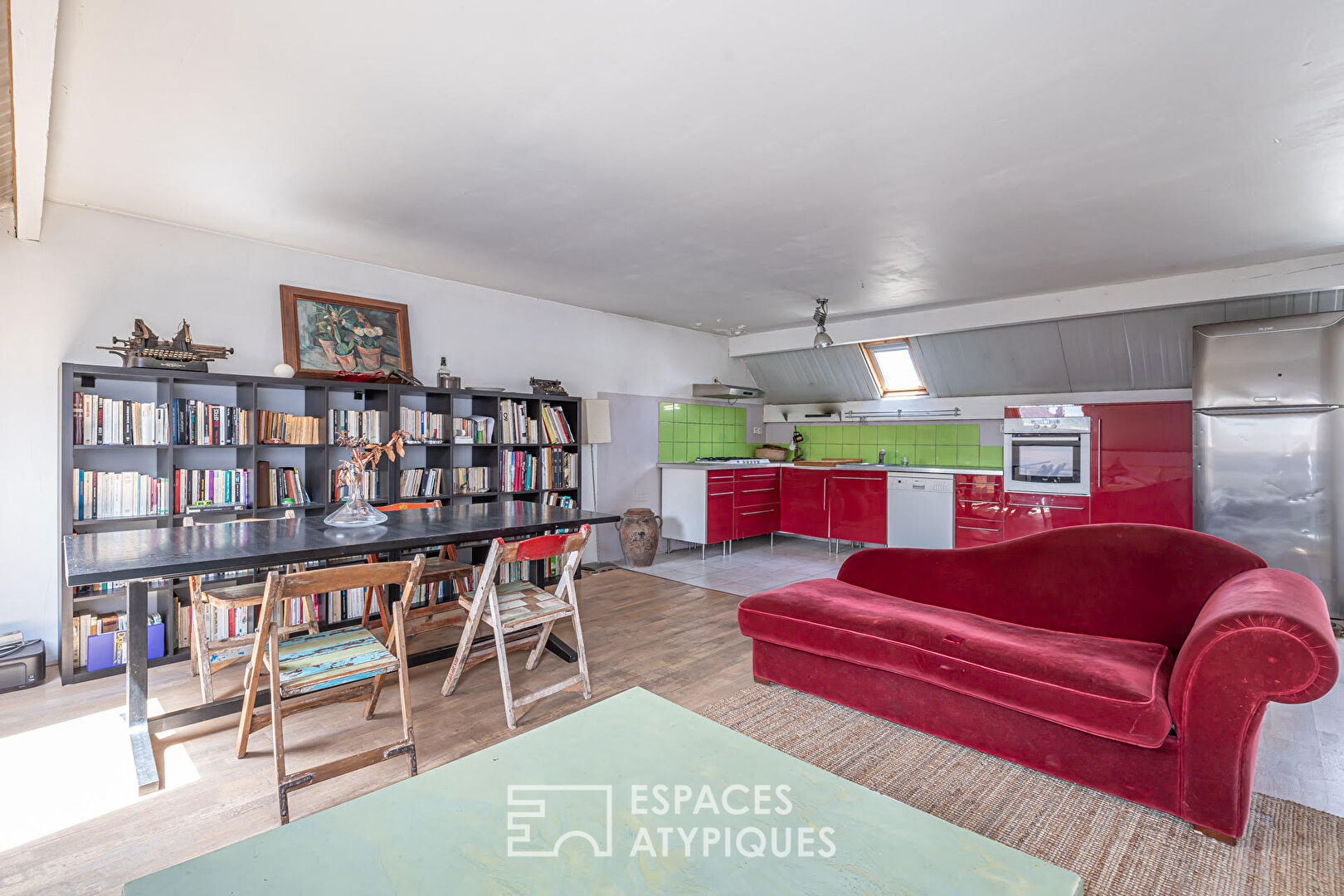 Situé entre le canal de Saint Denis et la Mairie d’Aubervilliers, ce lieu à l’esprit loft sur 4 niveaux de 158m2 (121,95m2 Carrez) est agrémenté d’une terrasse végétalisée et d’un rooftop.
