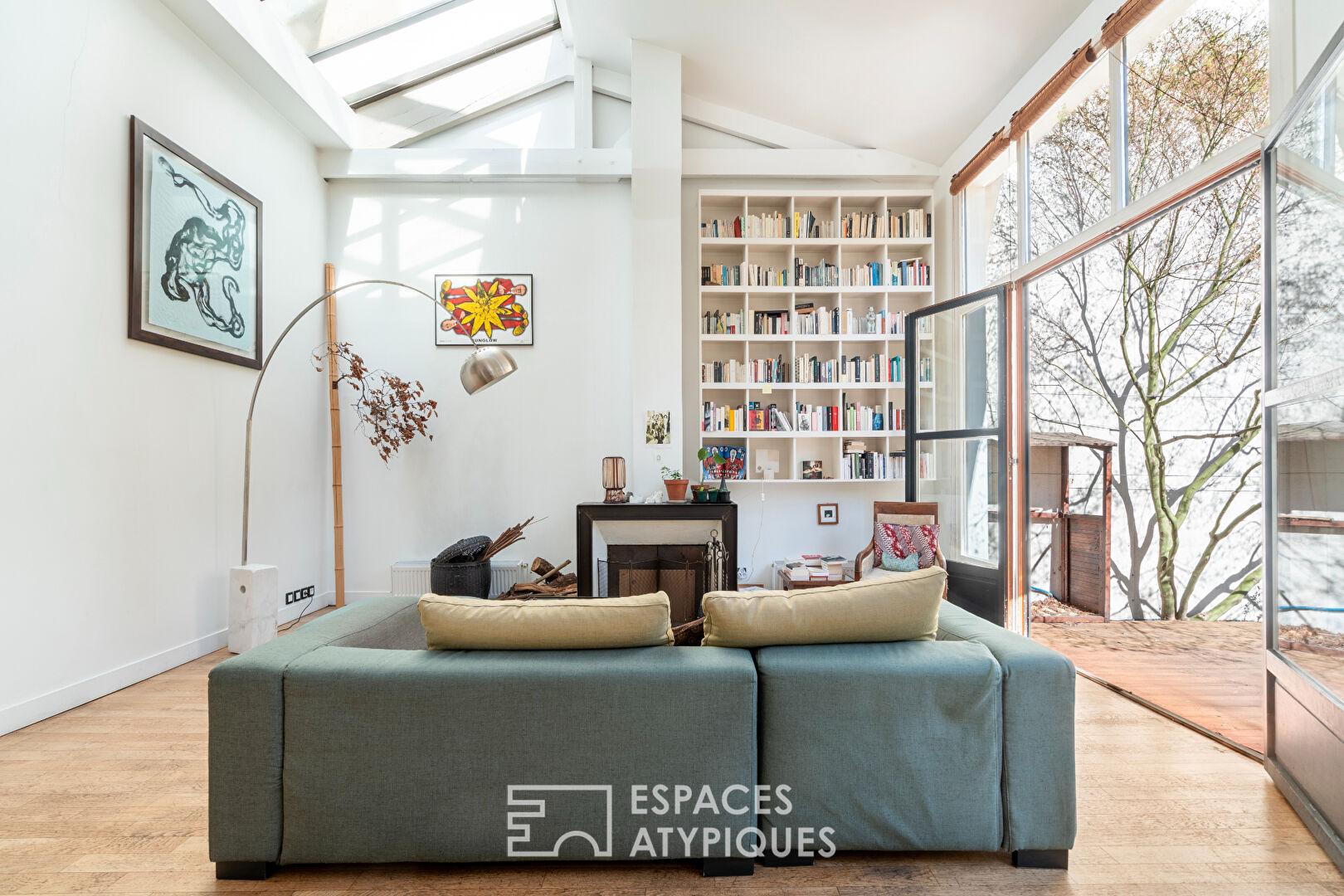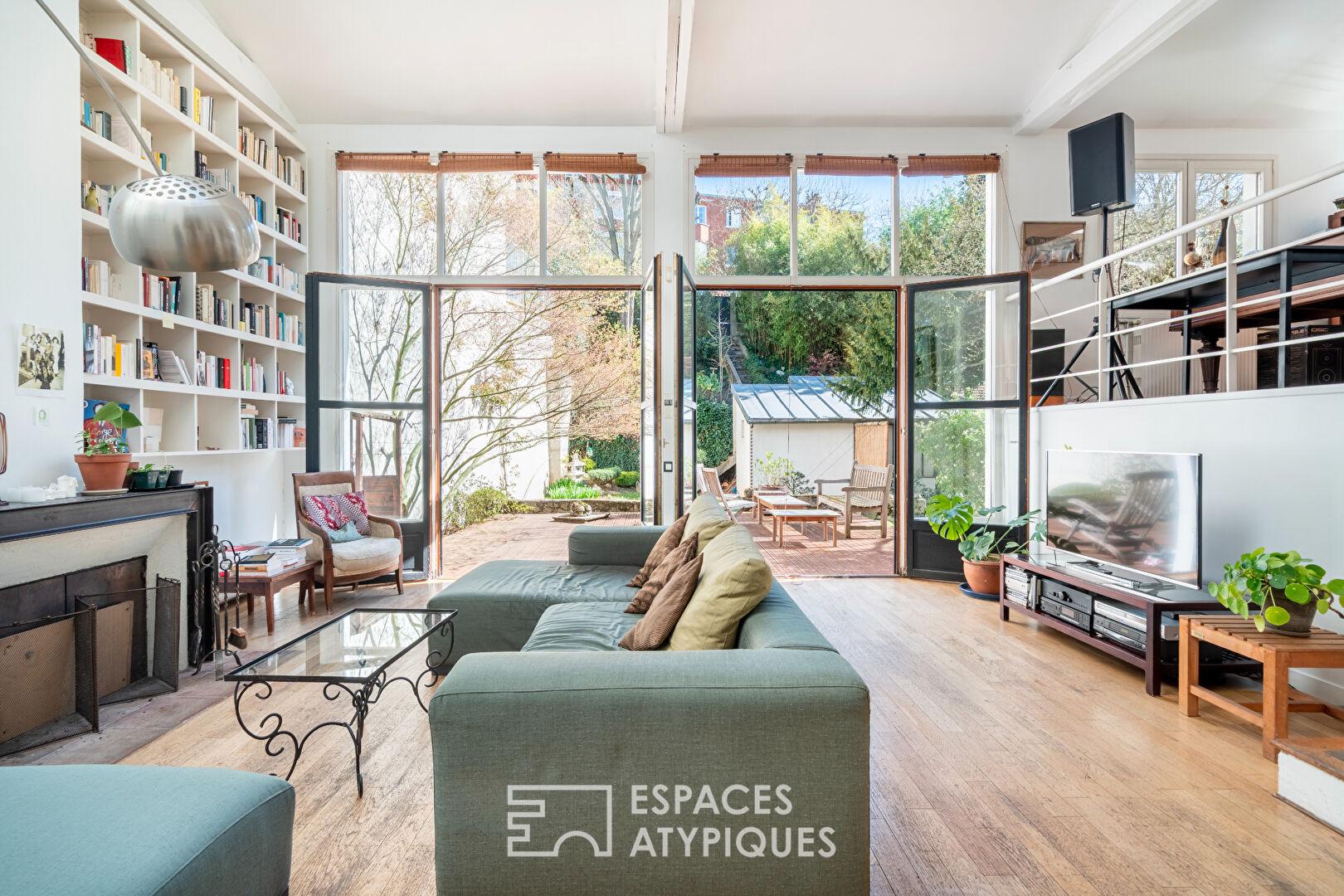 A l’arrière, exposés Sud-Est, la terrasse et le jardin à l’esprit japonisant, composent un décor apaisant et structuré. Une dépendance aménagée en studio avec mezzanine et salle d’eau avec toilettes s’y intègre naturellement. Une seconde entrée, en fond de parcelle, permet d’envisager une autonomie complète, adaptée à un usage professionnel (sous réserve des autorisations nécessaires), à l’accueil ou à un projet familial.
