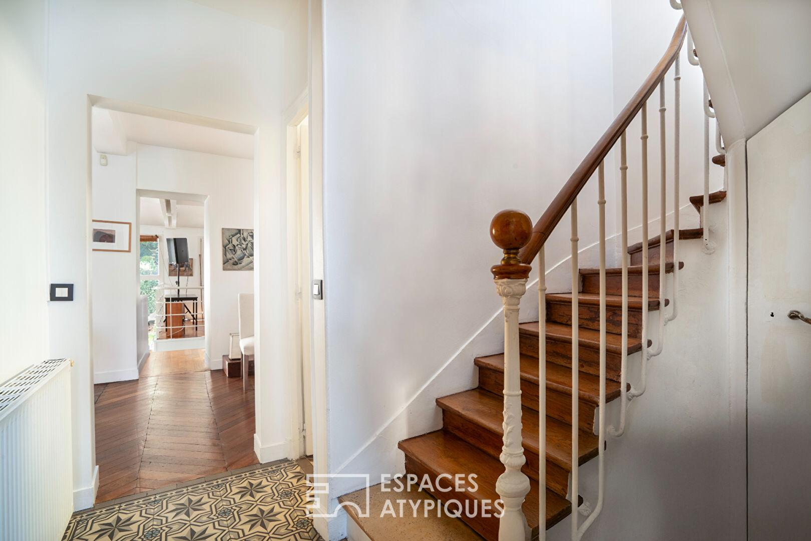 À l’abri des regards, au cœur de la très convoitée Villa du Pré, cette maison indépendante du début du XXe siècle déploie 261 m² au sol au sein d’une parcelle arborée de plus de 500 m². L’écriture architecturale mêle avec justesse le cachet de l’ancien à une extension contemporaine aux volumes remarquables. Une terrasse et une dépendance enrichissent cet ensemble singulier.