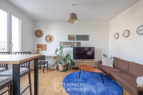 Entre le métro Garibaldi et Saint Ouen, cet appartement traversant de 54,07m2 Carrez, prend place au 1er étage d’une petite copropriété bien entretenue.