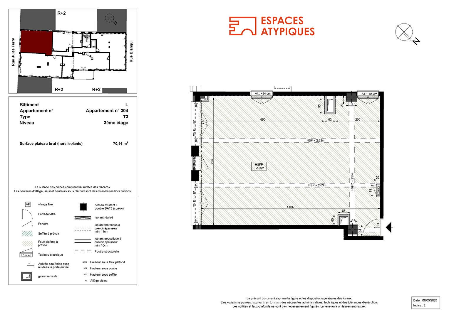 Situé au 3ème étage avec ascenseur, et développant une surface de 70,96m² Carrez, ce plateau offre une liberté d’aménagement totale. Plusieurs configurations sont envisageables, notamment la création de deux chambres, d’une salle de bain et de WC indépendant. Ces propositions restent indicatives et laissent place à l’expression de chaque projet de vie.