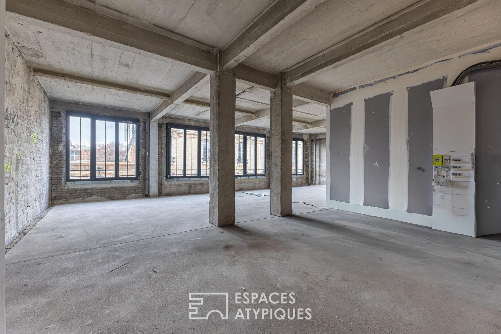 Au cœur du quartier des Puces de Saint-Ouen – Garibaldi, ce loft brut à aménager (disponible immédiatement) prend place dans un bâtiment à l’histoire singulière. Ancienne entreprise de déménagement et de garde-meubles, l’immeuble conserve les marqueurs d’une architecture industrielle pensée pour durer, reflet d’une vision avant-gardiste de son époque.