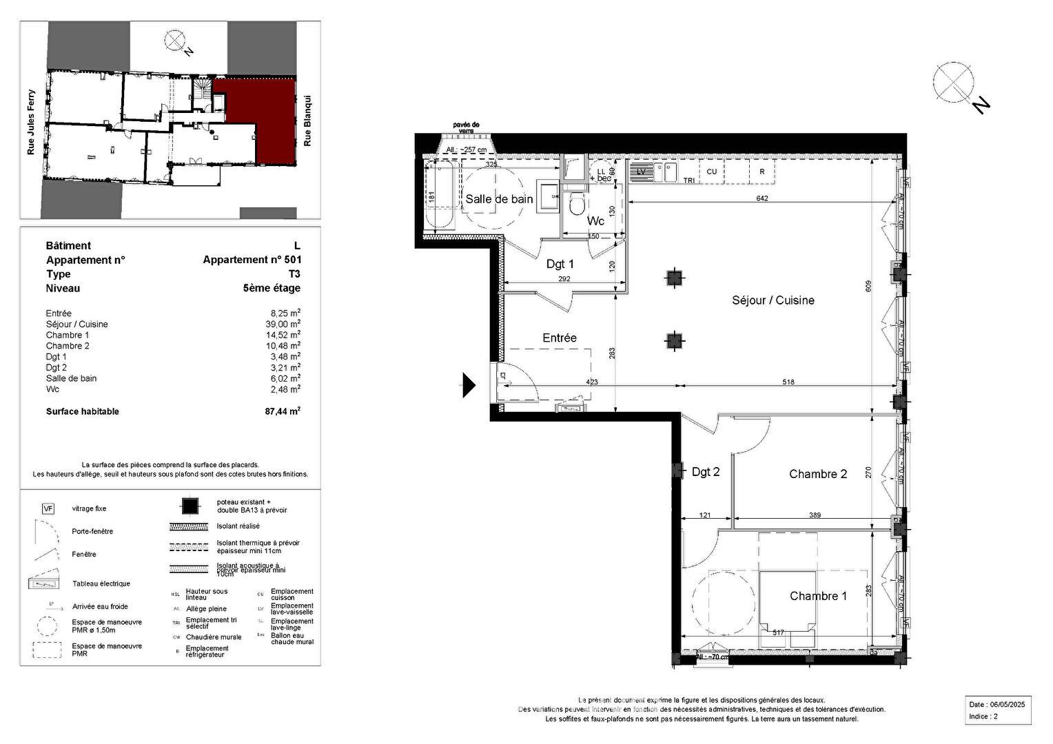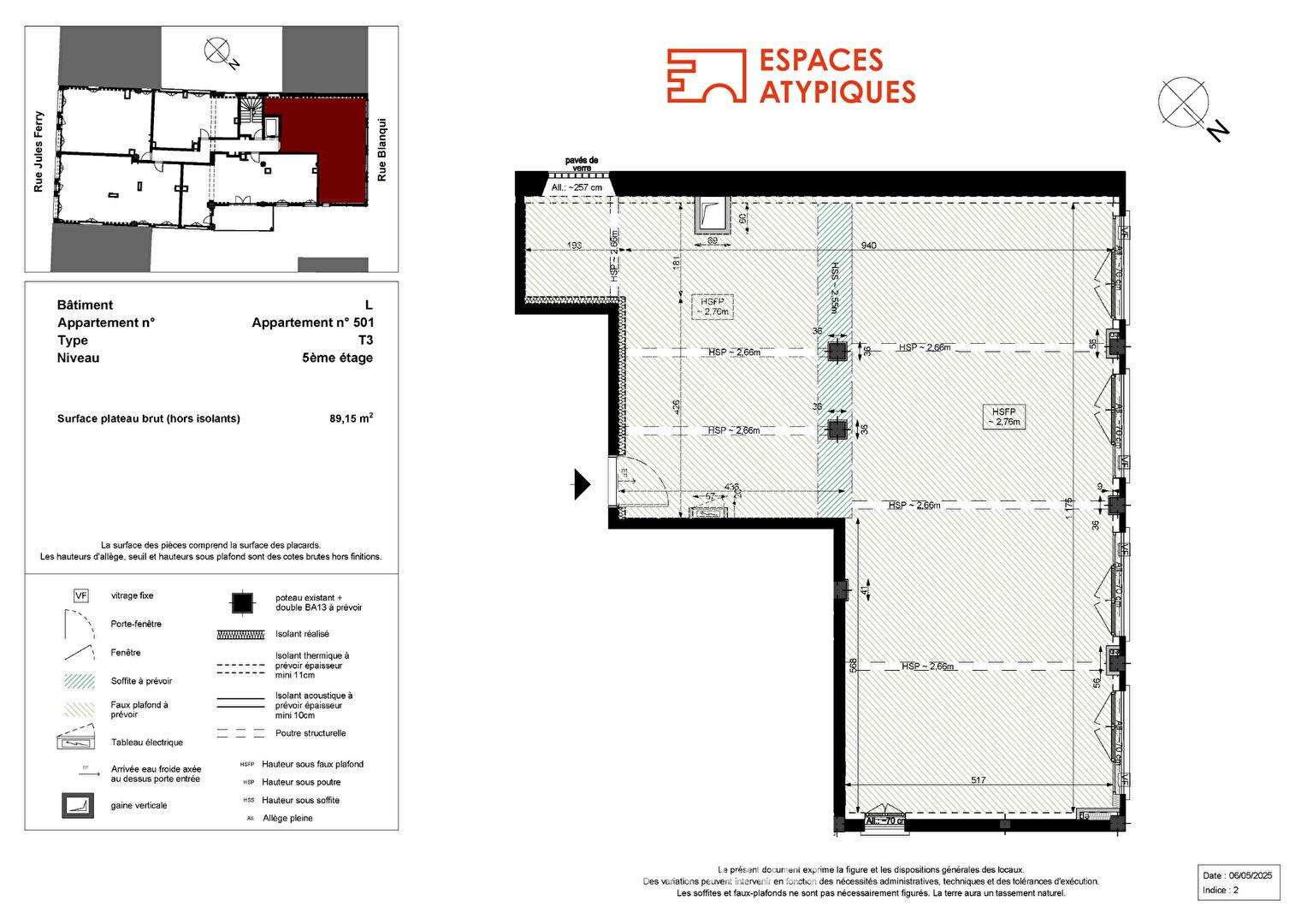 Situé au 5ème étage avec ascenseur et développant une surface de 89,15 m² Carrez, ce plateau offre une liberté d’aménagement totale. Plusieurs configurations sont envisageables, notamment la création de deux chambres, d’une salle de bain et de WC. Ces propositions restent indicatives et laissent place à l’expression de chaque projet de vie.