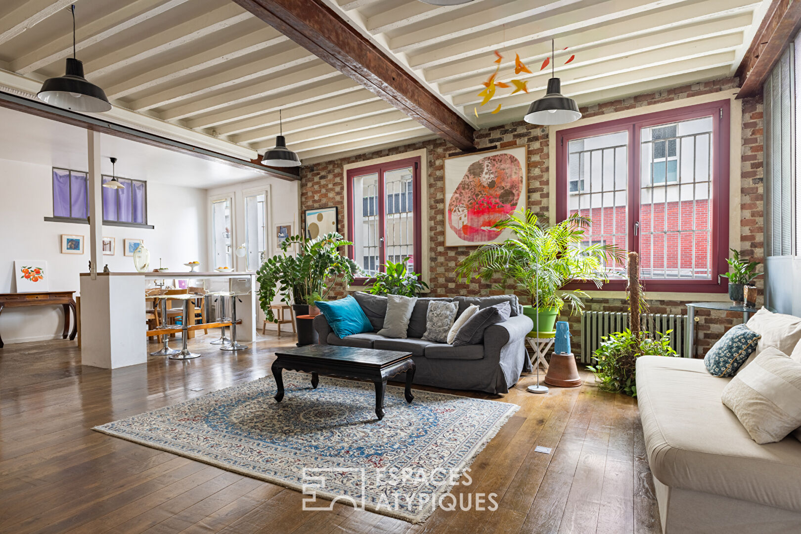 Le mariage subtil des matériaux tels que le parquet massif, le béton ciré et la brique apparente confère à ce loft une atmosphère à la fois chaleureuse et familiale, soulignant le caractère singulier et inspirant des lieux.