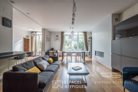 Situé dans une ancienne usine de fabrication de presses hydrauliques, réhabilitée en plusieurs lots, ce loft de 128,90 m2 Carrez, est prolongé d’une cour pavée et plantée de 20 m2.