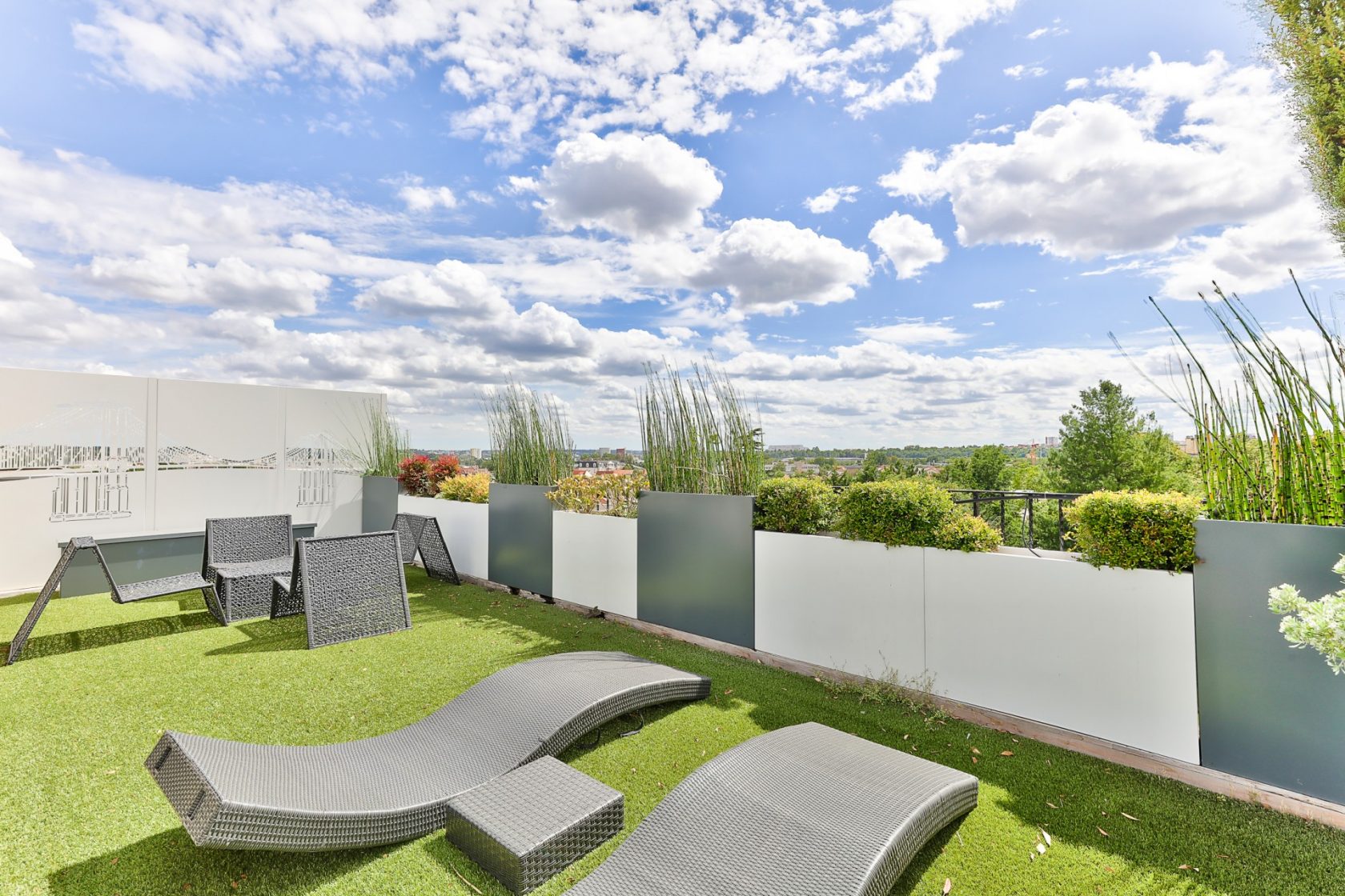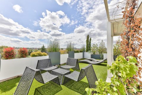 Celui-ci offre une vue panoramique spectaculaire à 360° sur 89 m², agrémenté d’un coin détente, d’un coin repas et d’une cuisine d’été.