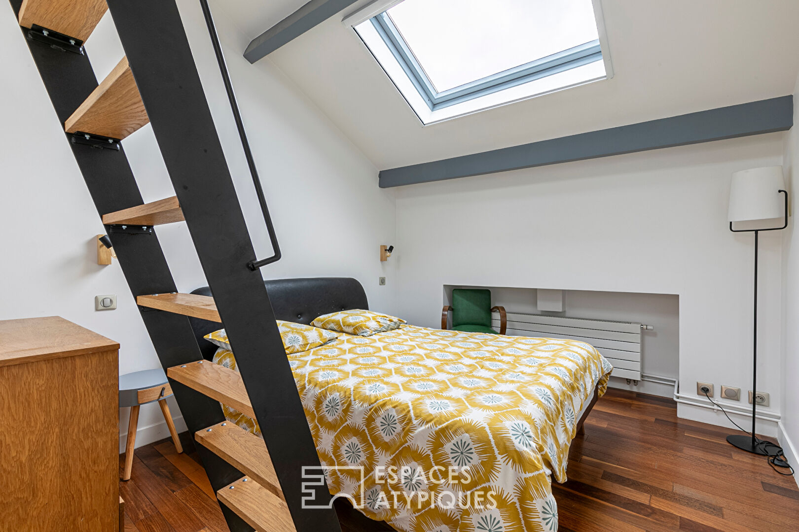 Localisé en bout d’allée et au calme absolu, ce loft en duplex a fait l’objet d’une réhabilitation complète en 2019. La lumière omniprésente, la hauteur sous plafond approchant les 4,5m et la qualité des prestations au sein de cette copropriété préservée offrent un cadre de vie remarquable.