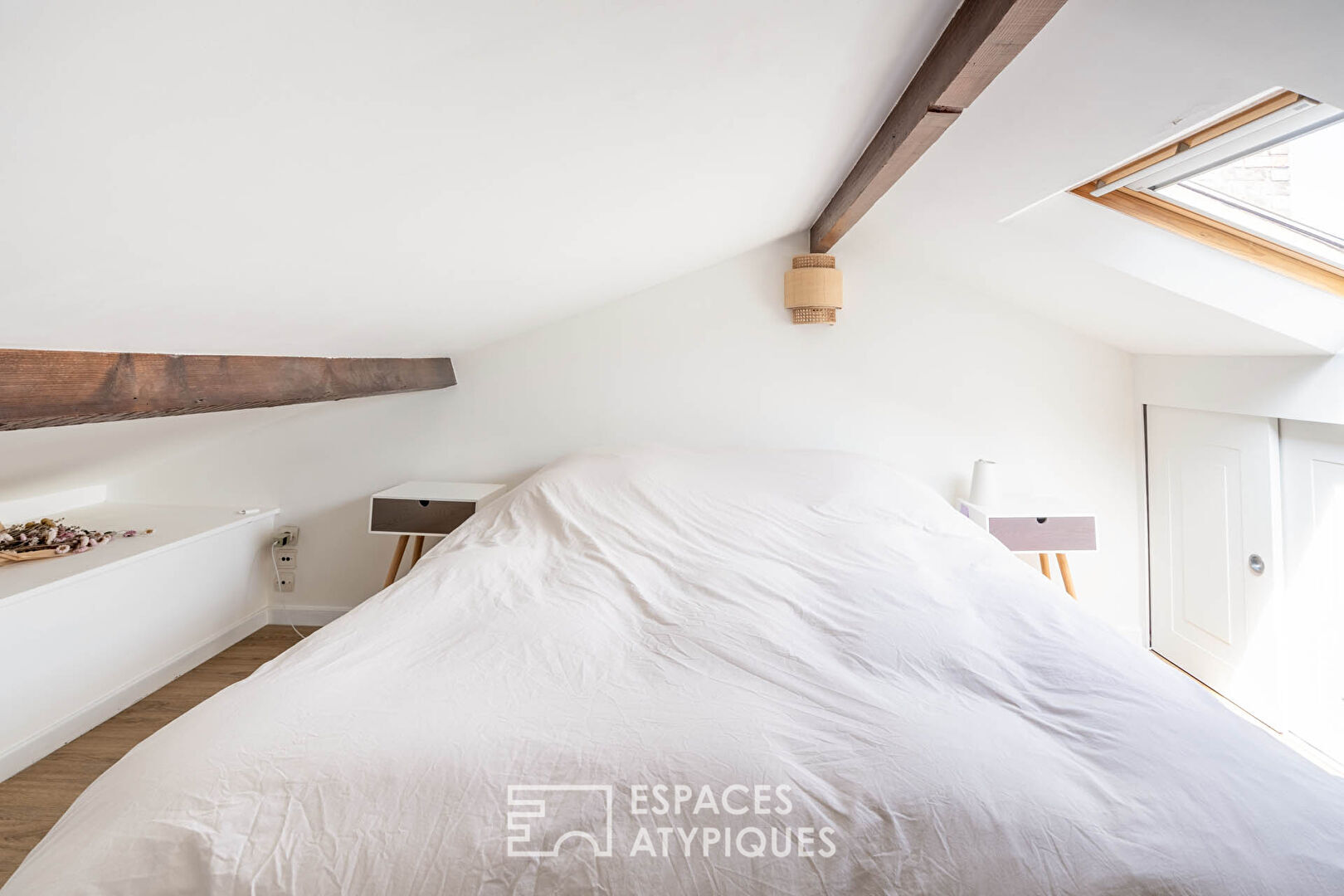 Les combles aménagés abritent la deuxième chambre mansardée dont les sous pentes ont été transformées en placards.