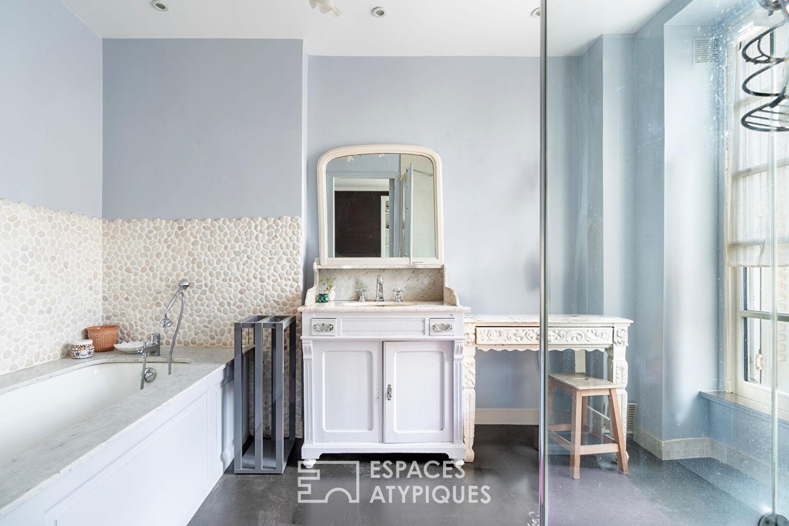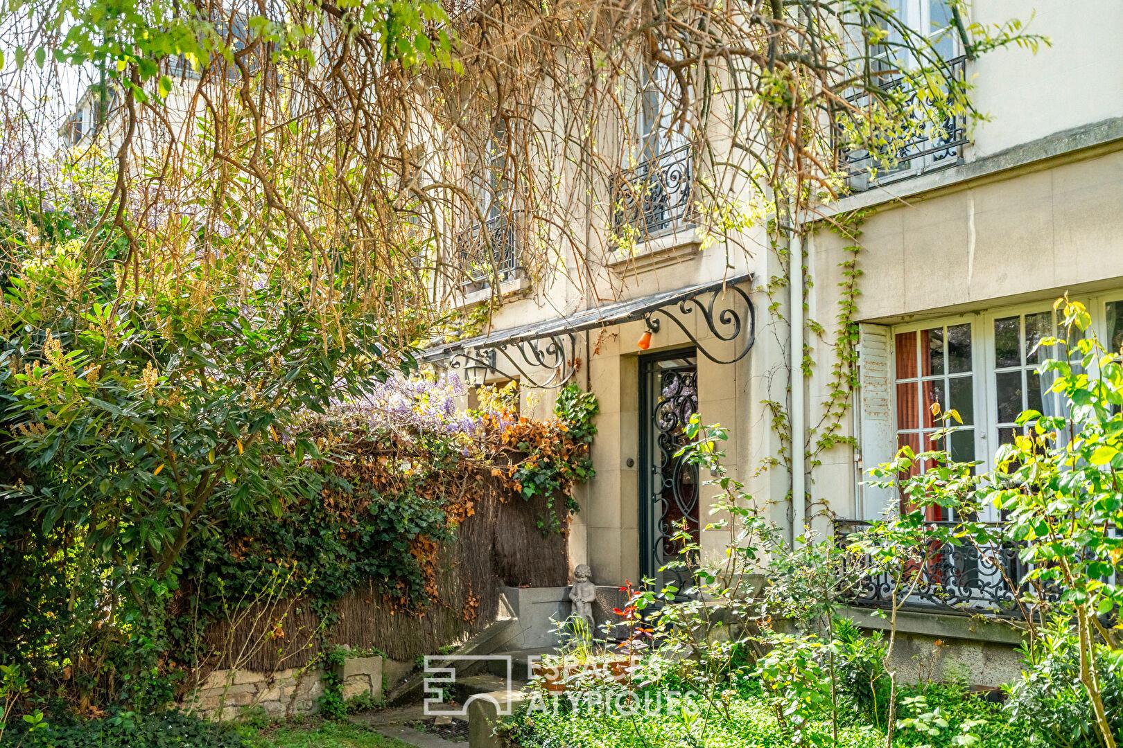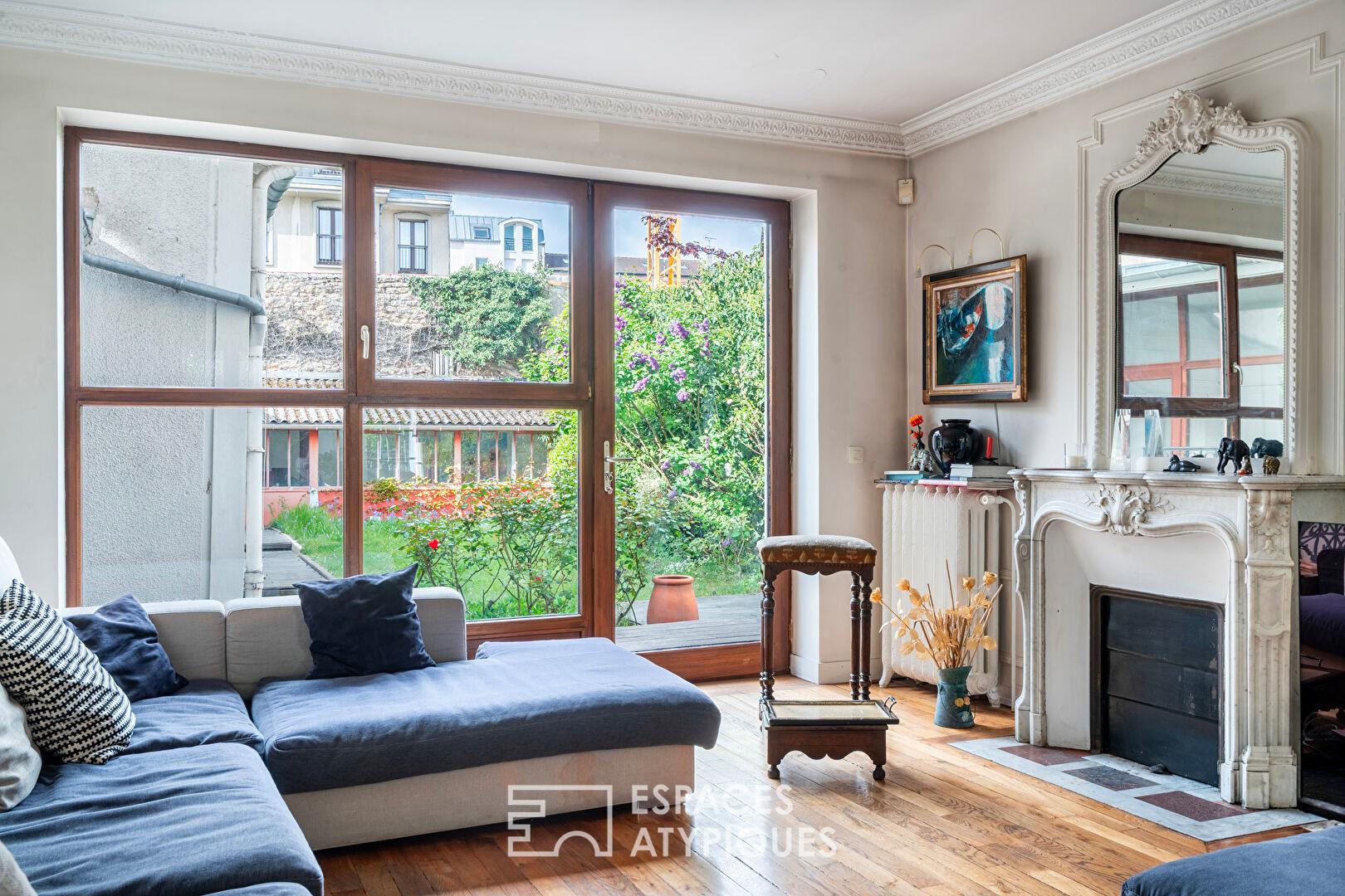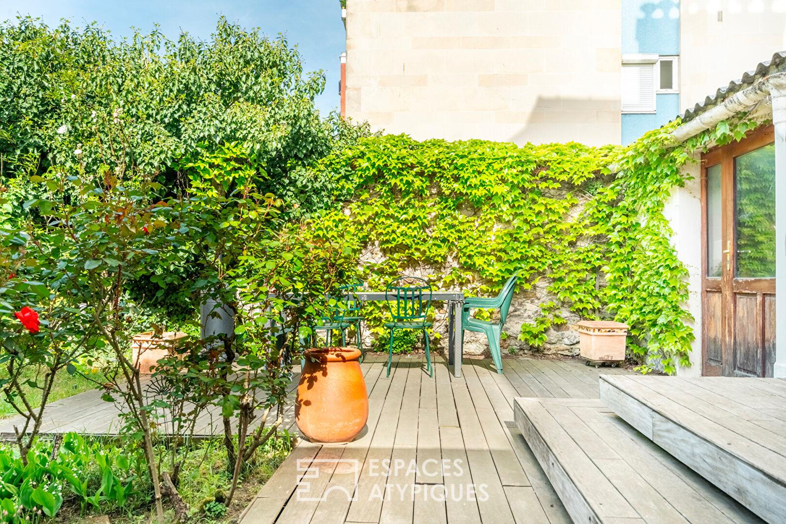 Le jardin, enclavé et préservé, prolonge cette sensation de refuge, à l’abri des regards, dans un calme rare à quelques minutes seulement de Paris.