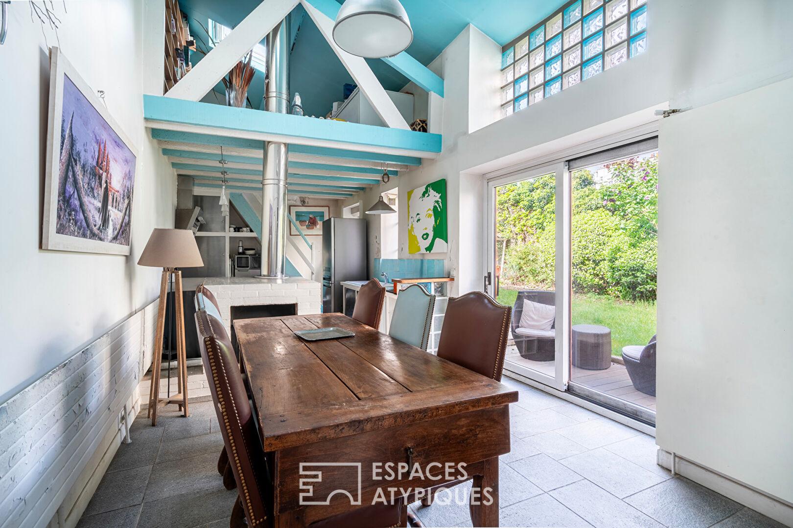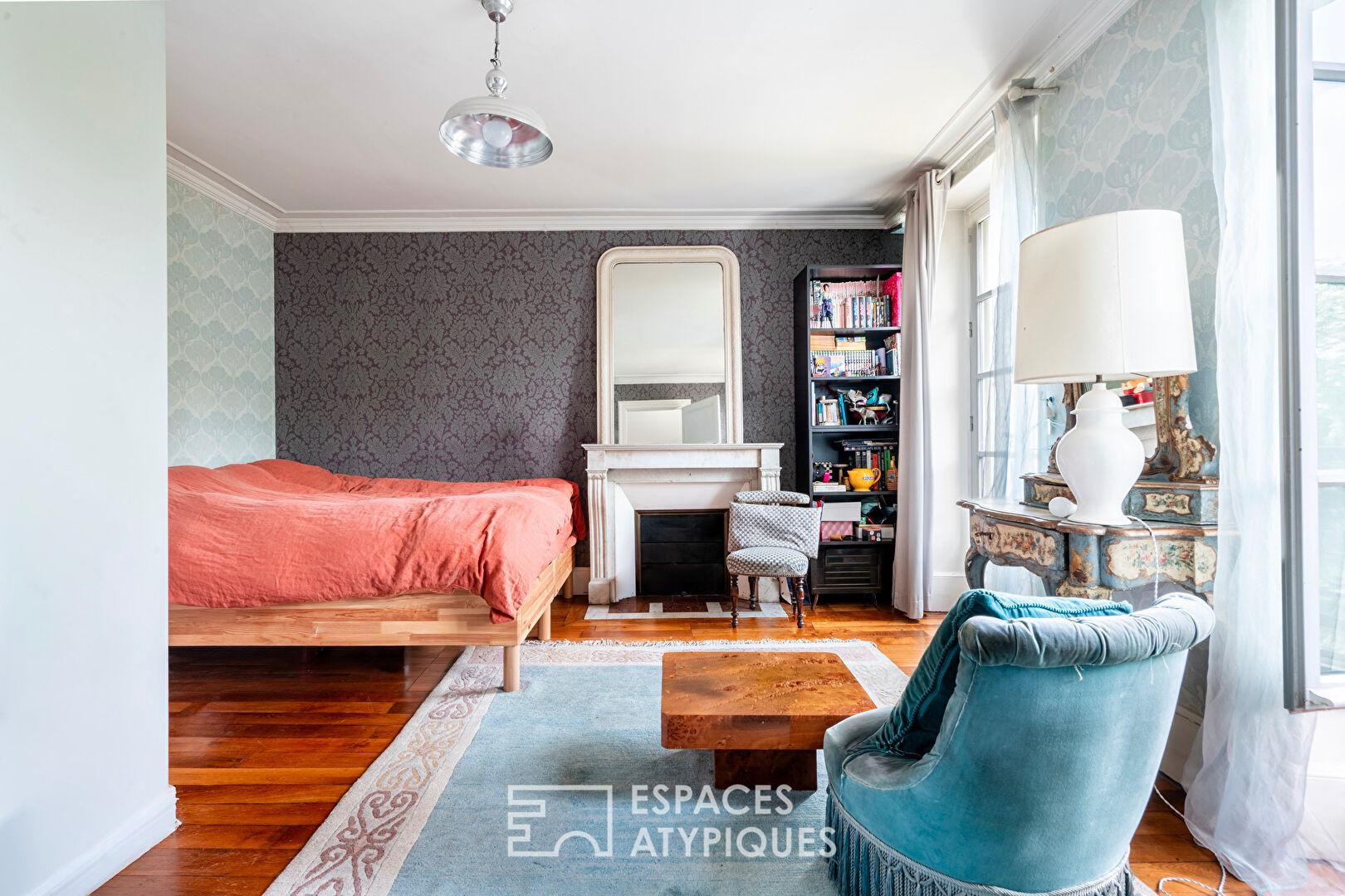 Face au bois de Vincennes, dans le quartier de Gravelle à Charenton, cette maison bourgeoise des années 40 impose d’emblée une présence singulière. Une allure racée, libre, presque artistique, où chaque détail semble avoir été vécu autant que choisi. Elle développe 246,78 m² habitables (257,53 m² au sol) et une écriture intérieure qui échappe aux standards.