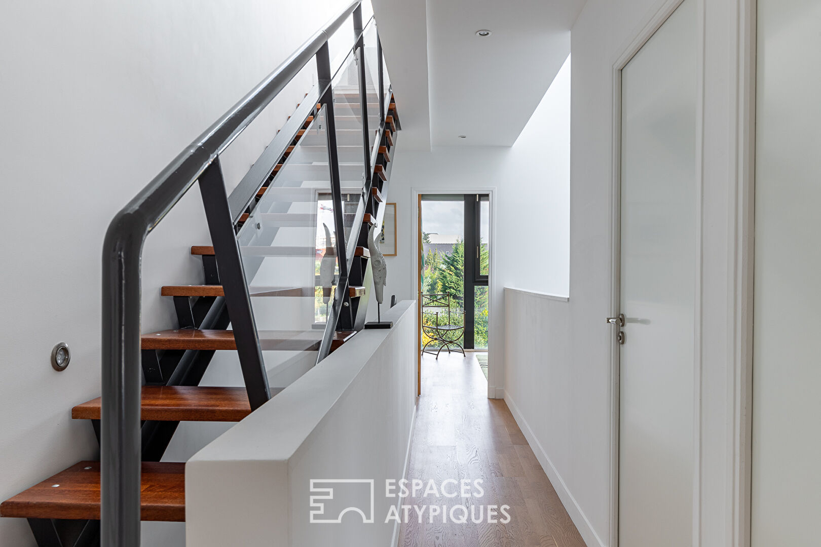 Mais revenons à cette maison, plus de 200 m2 de vie et de volume, de possibilité et d’espaces. Jardin et calme absolu. Entre intérieur et extérieur grâce à ces immenses baies vitrées et ce puits de lumière magistral.