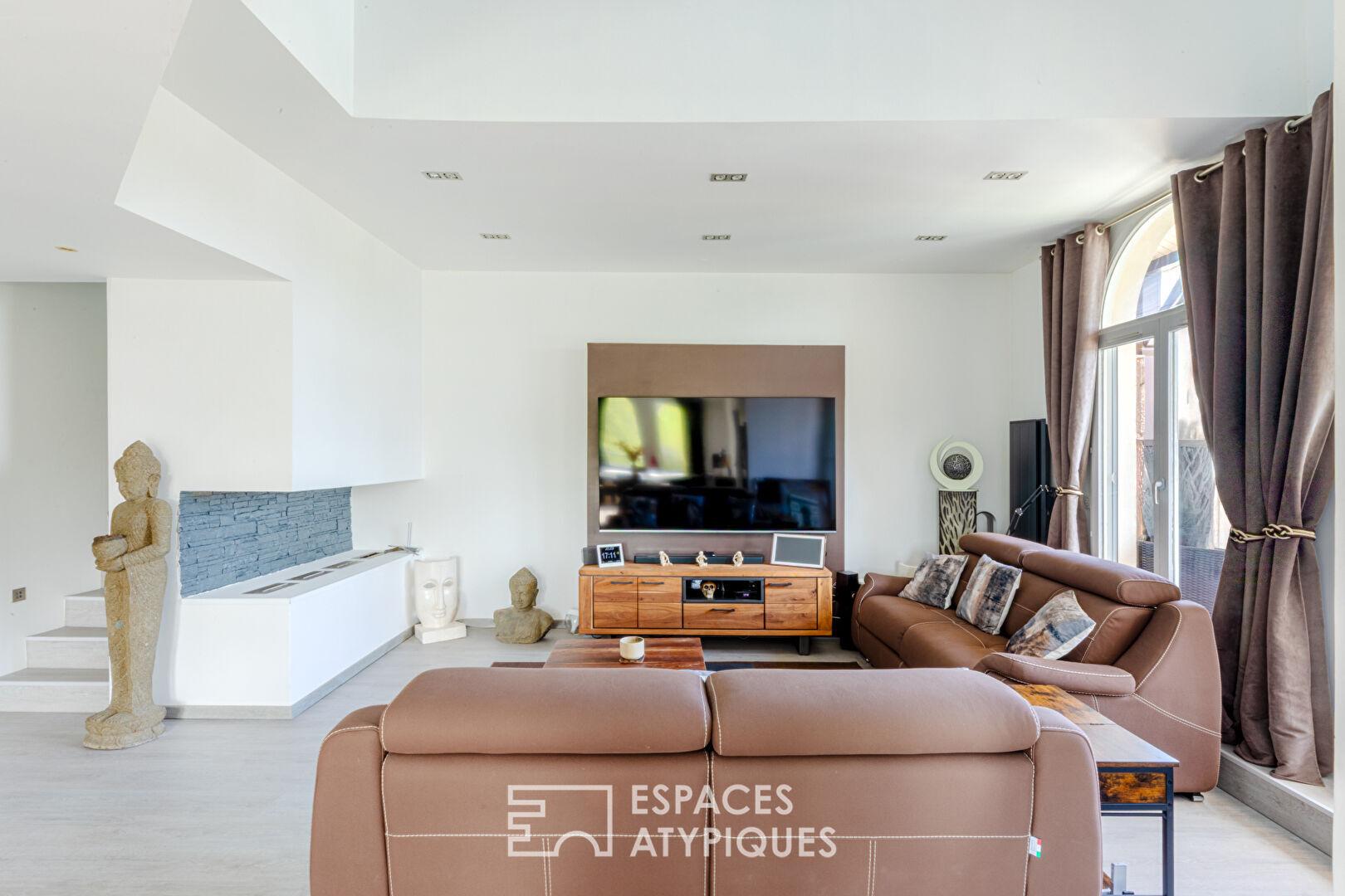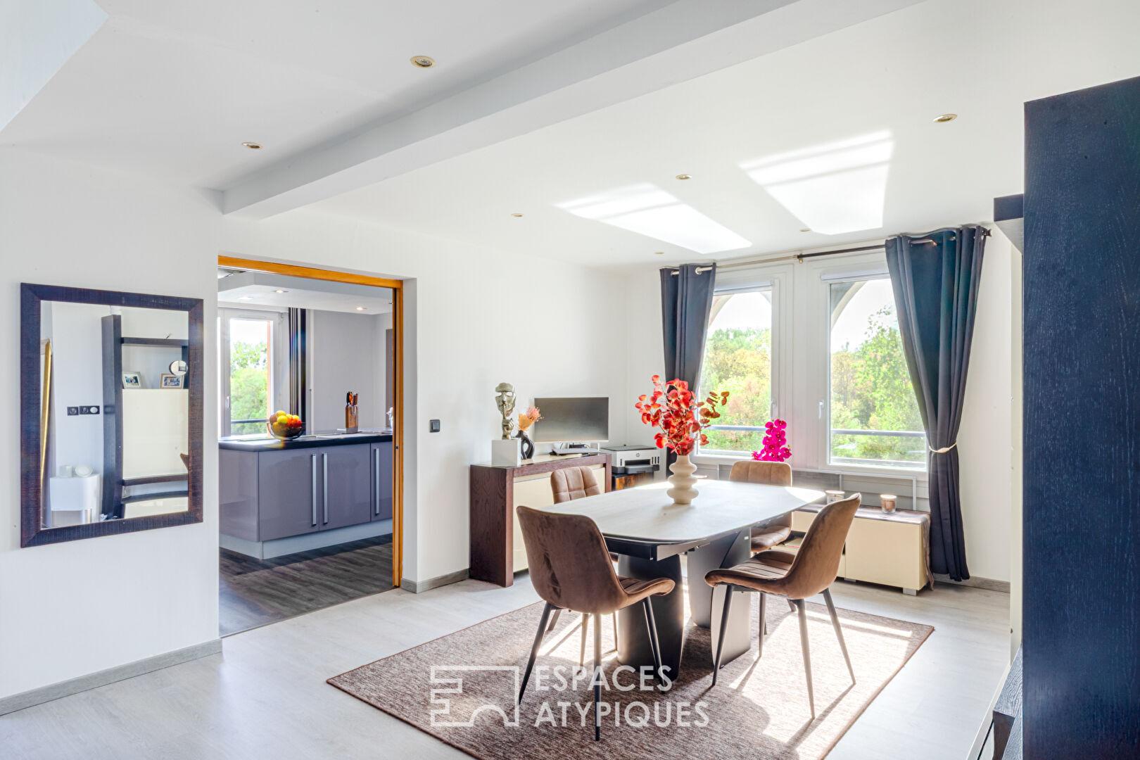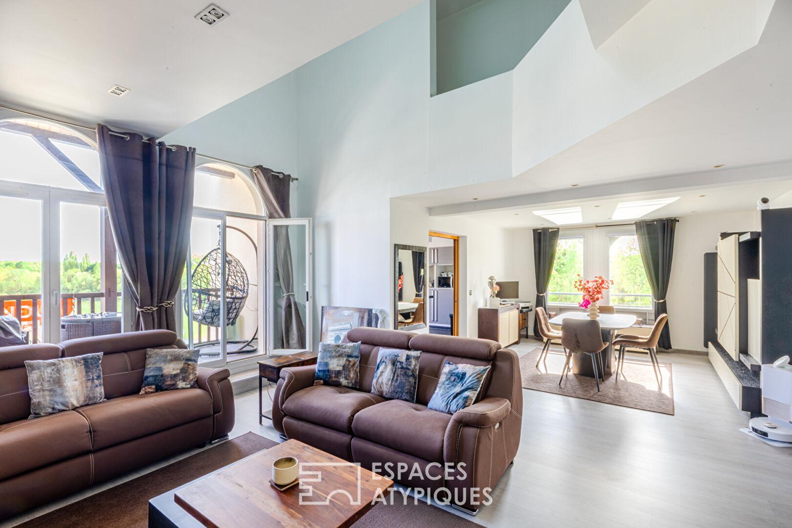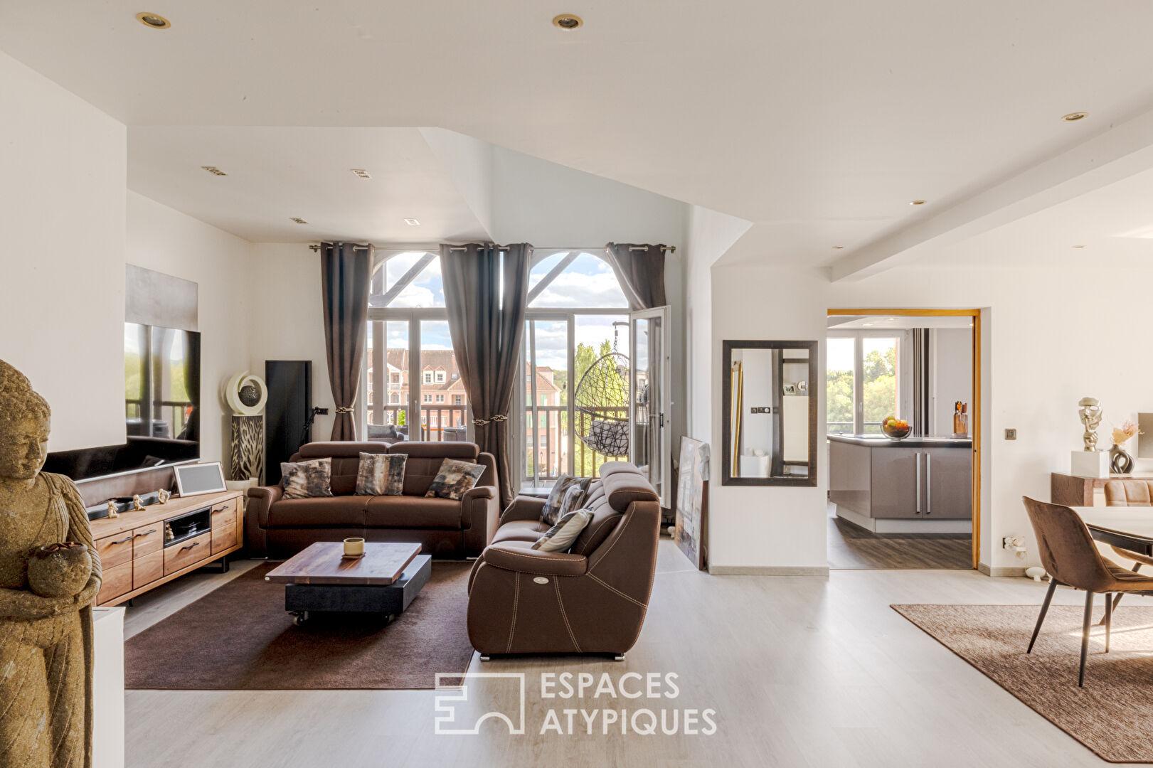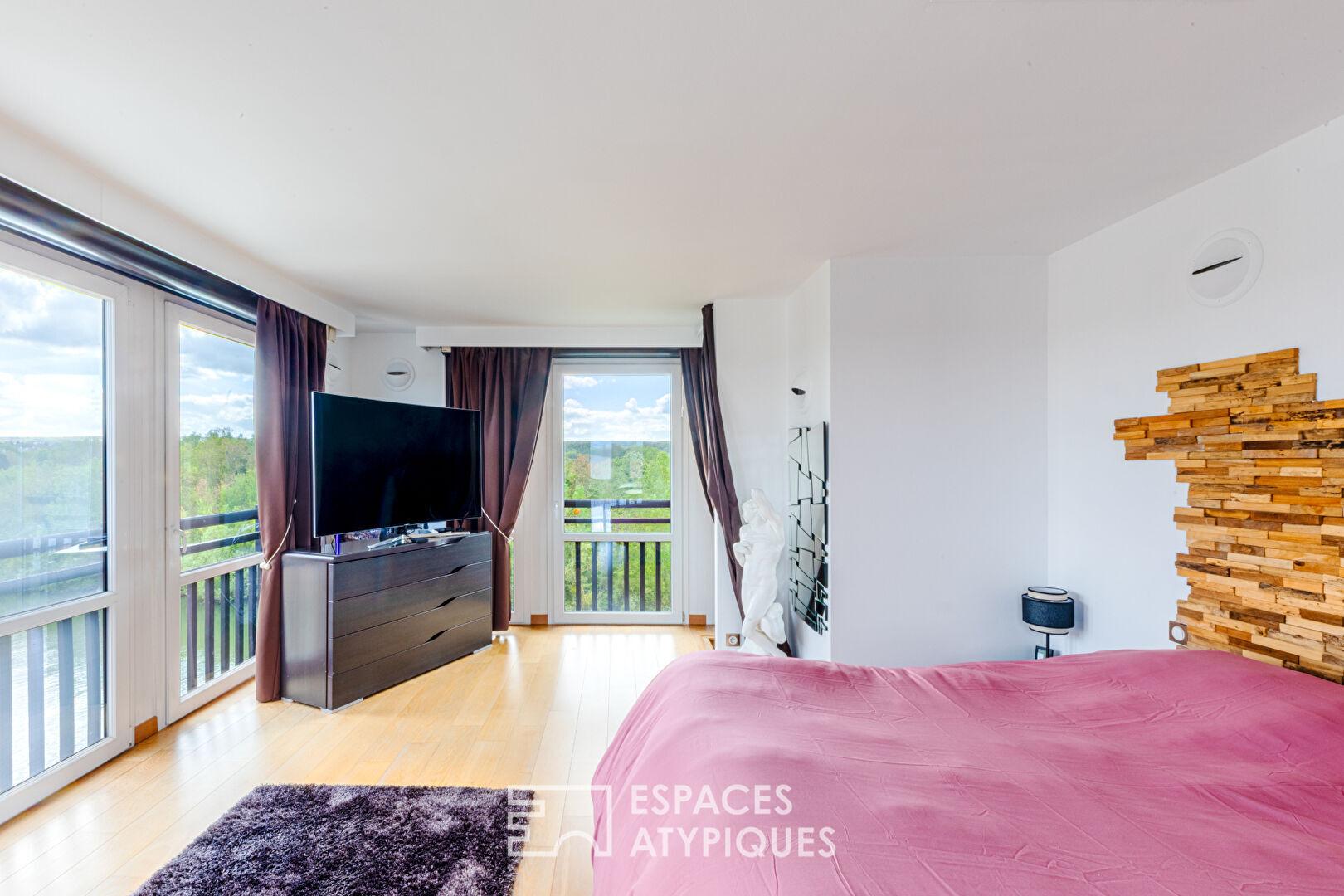 Niché au dernier étage d’une résidence confidentielle et prisée de Cergy-Port, ce triplex de 162 m² s’offre comme une prouesse architecturale où l’eau et la lumière sont les principaux invités. Entièrement réinventé avec des matériaux nobles et une esthétique contemporaine, ce lieu de vie unique propose une expérience résolument tournée vers l’horizon.
