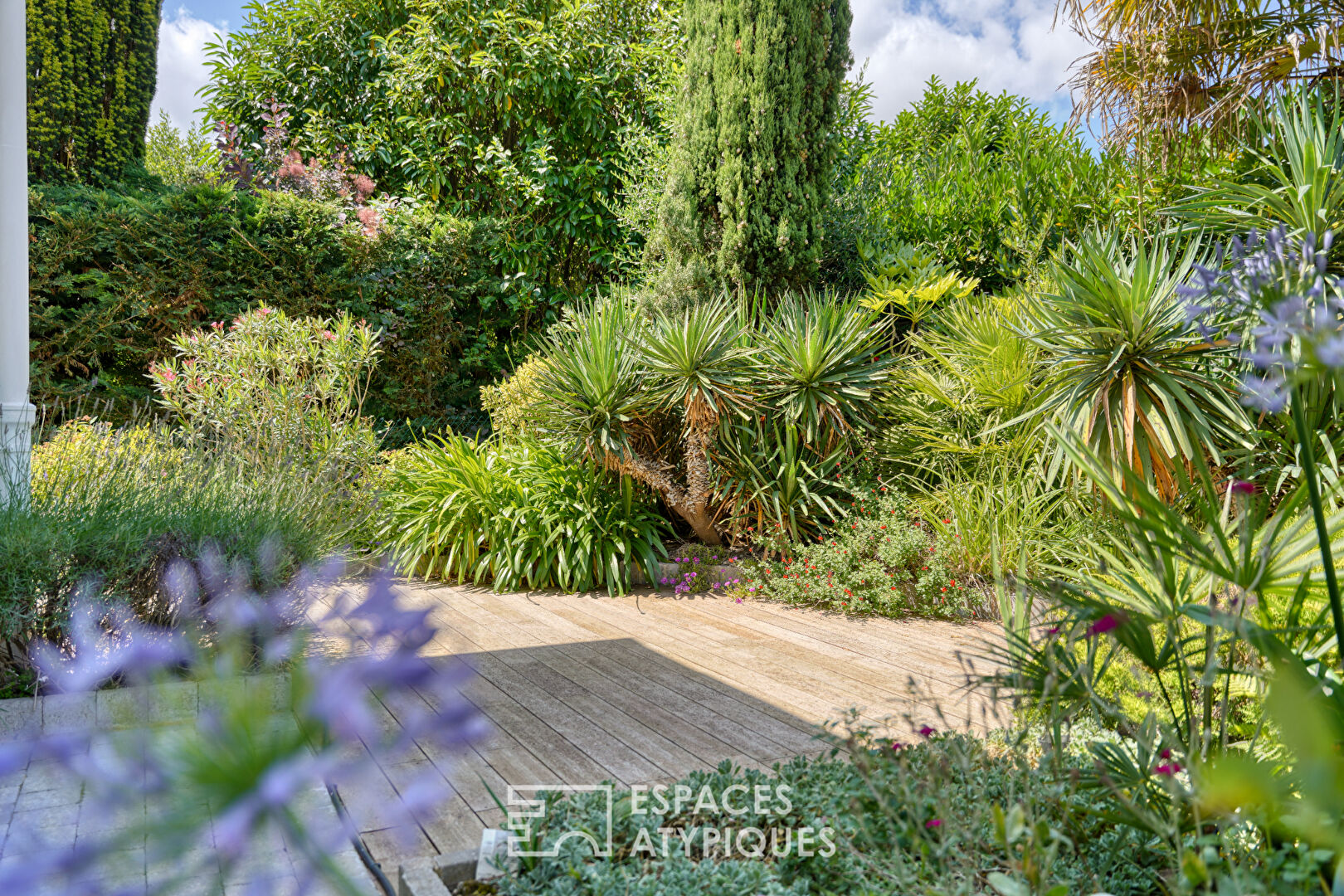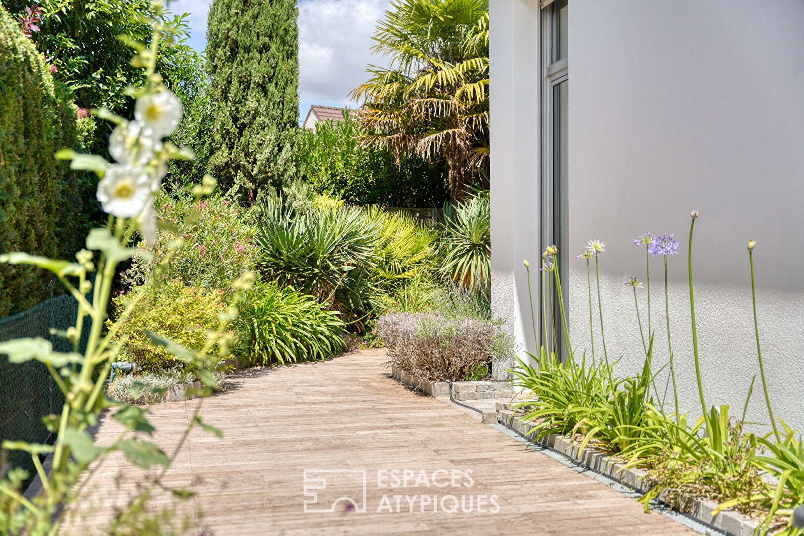 Le jardin paysager, conçu comme un écrin intime, est agrémenté d’une terrasse en bois et d’essences exotiques. Une dépendance de 20 m² offre un potentiel d’aménagement supplémentaire, idéal pour la création d’un studio indépendant, d’un atelier créatif ou d’un véritable espace de vie autonome.