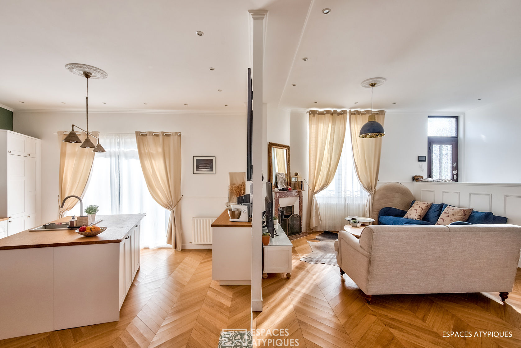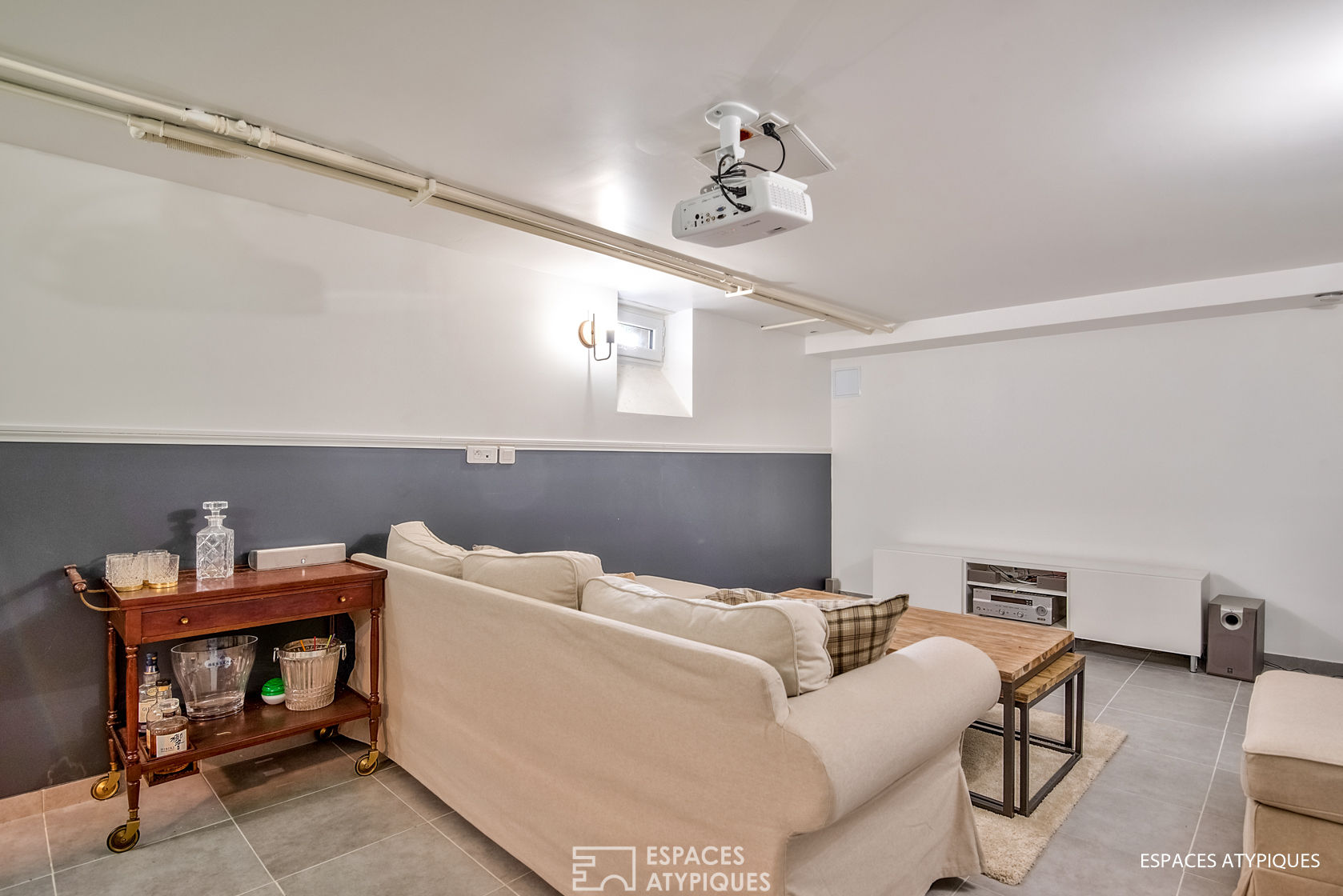 Cette maison des années 30 totalement revisitée d’environ 155 m² est située au calme d’une petite rue à proximité immédiate de toutes les commodités, sur une parcelle de près de 700 m 2. Sous de majestueux volumes, la pièce à vivre est traversante, offrant ainsi une clarté naturelle par tout temps. Elle accueille une cuisine avec îlot central et pourvue d’une verrière de type atelier qui augmente les perspectives et délimite les volumes. On trouve un accès à la terrasse de 30 m², exposée Sud Ouest, dont la pergola réalisée sur mesure permet de profiter pleinement des beaux jours tout en créant un ombrage suffisant avec délicatesse et élégance. Une suite parentale avec salle d’eau et dressing est également présente sur ce premier niveau. Les parquets massifs d’époque et ceux plus récents en point de Hongrie accompagnent les carreaux de ciments de l’entrée, le tout dans une atmosphère à la contemporanéité affirmée. Coté nuit à l’étage, trois chambres en partie mansardées, se partagent une vaste salle de bain et un bureau. Au sous-sol, en accès depuis l’intérieur, les pièces techniques (stockage et buanderie) prennent place, mais aussi une vaste pièce servant aujourd’hui de cinéma, ainsi qu’une petite cave à vin. Après une rénovation complète menée très récemment, la maison aux allures maintenant bourgeoises avec ses plus de trois mètres de hauteur sous plafonds, ses moulures et rosaces, ses parquets massifs et ses cheminées en marbre est mise en lumière dans un cadre raffiné. Stationnement ouvert pour 4 véhicules et possibilité de créer un garage fermé. Gare de Pontoise à 10 min à pieds Écoles Privées de la primaire au lycée à moins de 650 m – 8 min à pieds Groupe scolaire privé Notre Dame de la Compassion à – 9 min à pieds Marina / 07.69.97.52.15 Marina KABENE Agent Commercial – Numéro RSAC : 832 209 241 – Pontoise