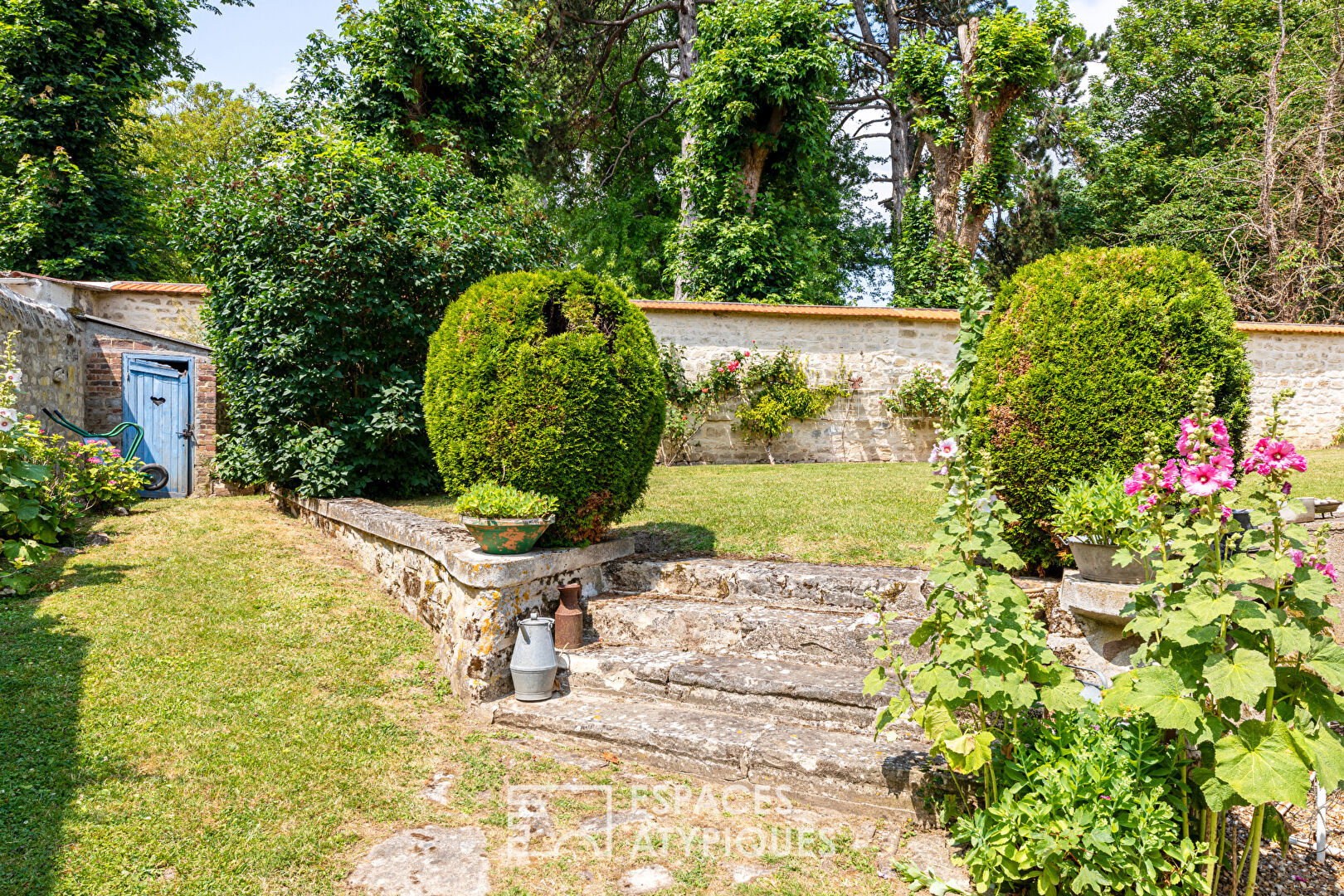 Cette belle et grande demeure en pierres ciselées se réserve aux amoureux de lieux inédits au coeur du Parc Naturel du Vexin tout en restant proche des grands centres urbains.