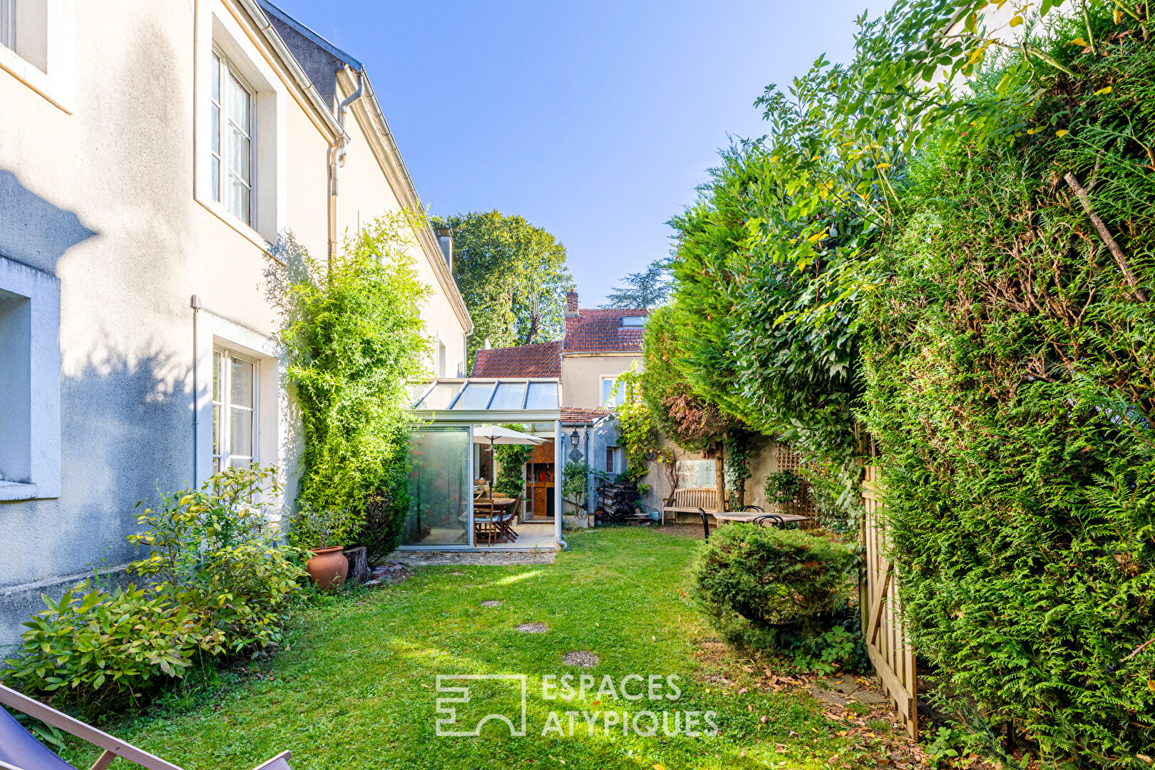 Le charme se poursuit à l’extérieur, avec une cour et un jardin intimiste, parfaits pour profiter des beaux jours en toute quiétude.