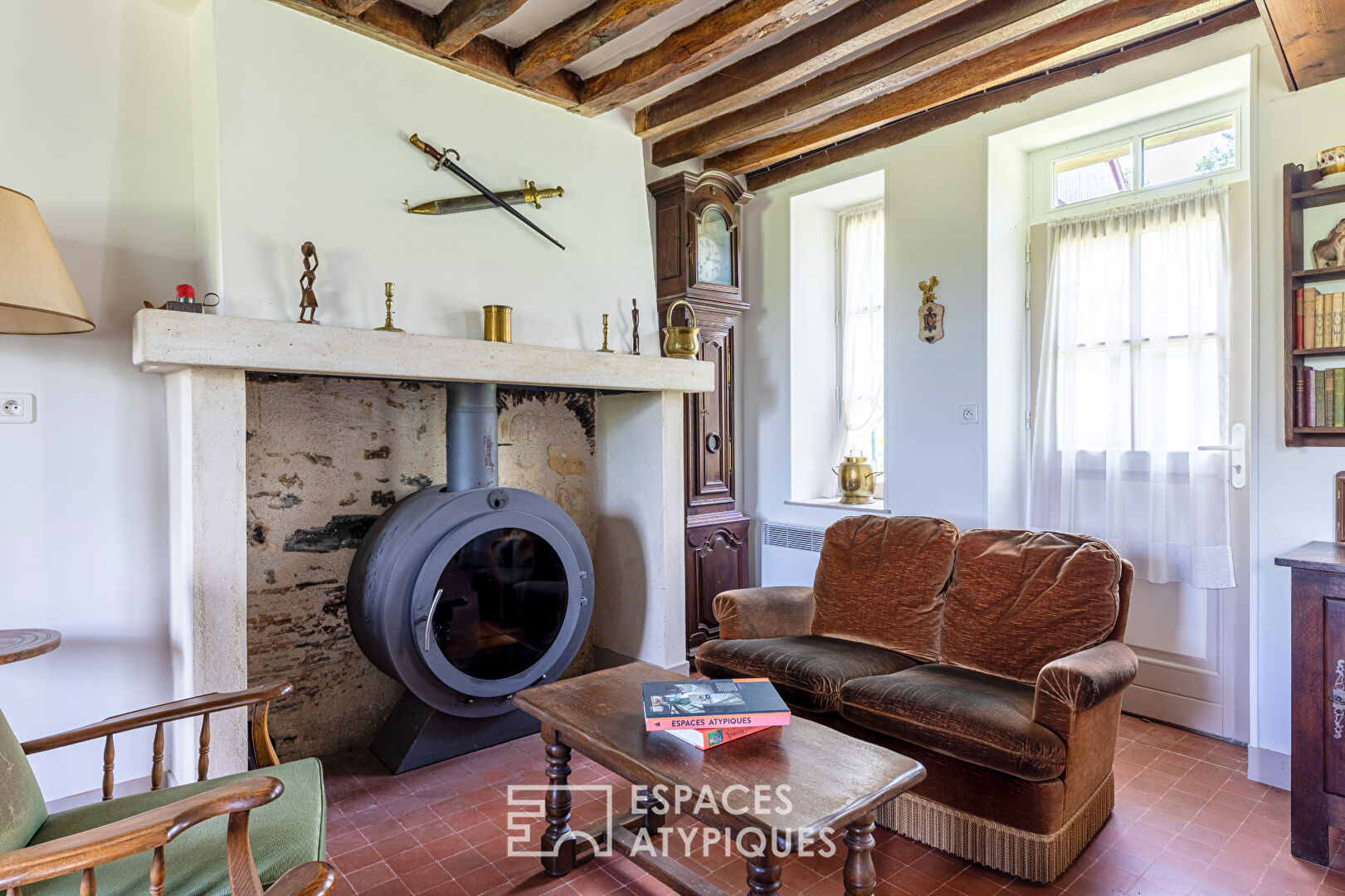Le premier étage, accessible par un bel escalier, mène, vers une belle pièce traversante de plus de 25 m² et une chambre à l’ambiance chaleureuse grâce à ses tomettes conservées avec soin.