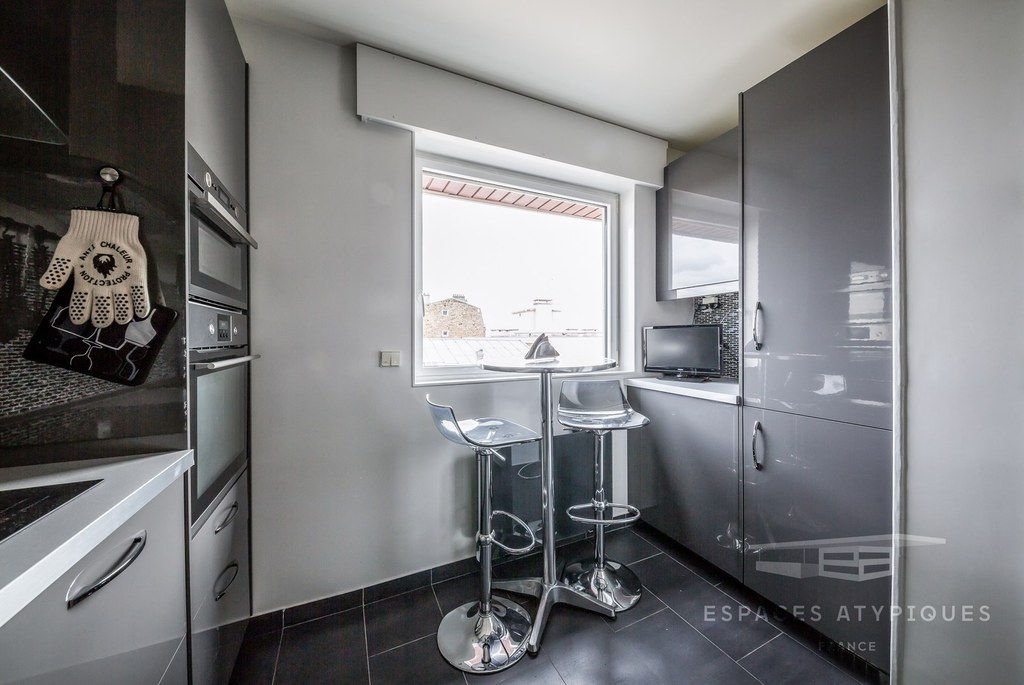 D’une superficie de près de 24m² ce dernier nous offre une vue panoramique sur Paris. Bains de soleil et moments de partage en font a n’en pas douter le point central de ce Duplex.