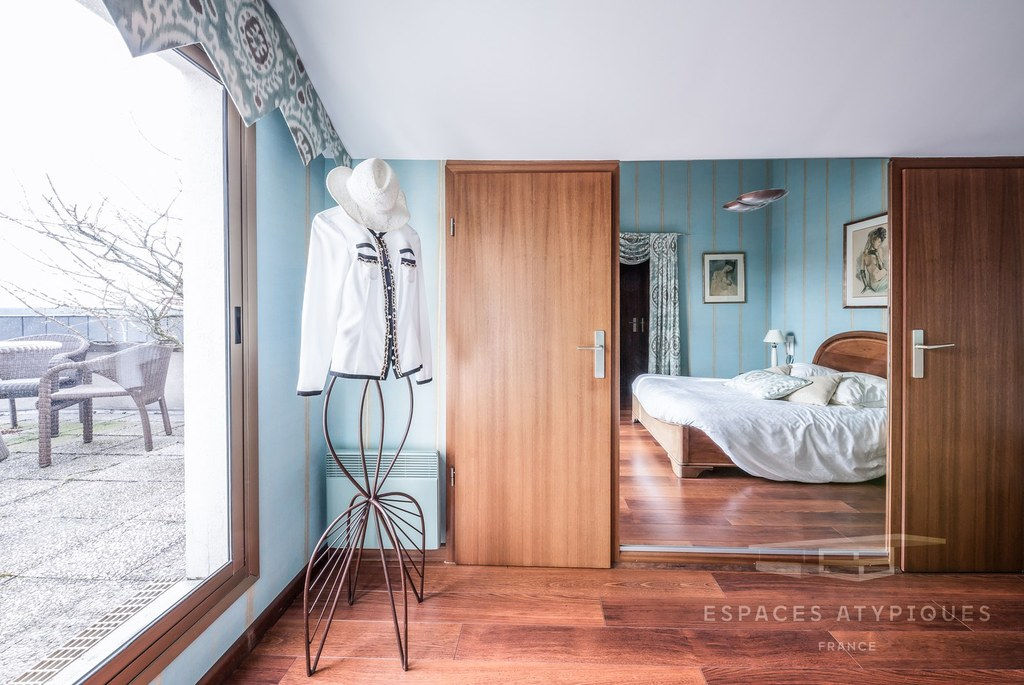 L’étage supérieur, desservi par un majestueux escalier hélicoïdal, propose deux jolies chambres toutes équipées de salle d’eau et d’un dressing ayant un accès direct au toit terrasse.