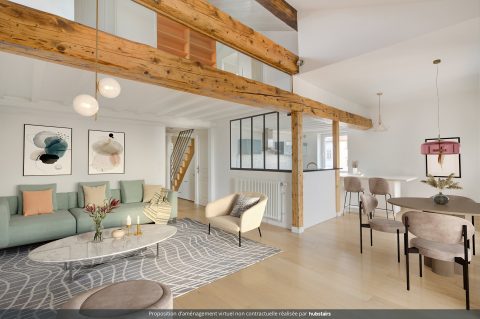 Situé en plein centre d’Ecully, à 100m de l’église, cet appartement en duplex de 143m2 (117m2 carrez) prend place au 3e et dernier étage d’un immeuble ancien.