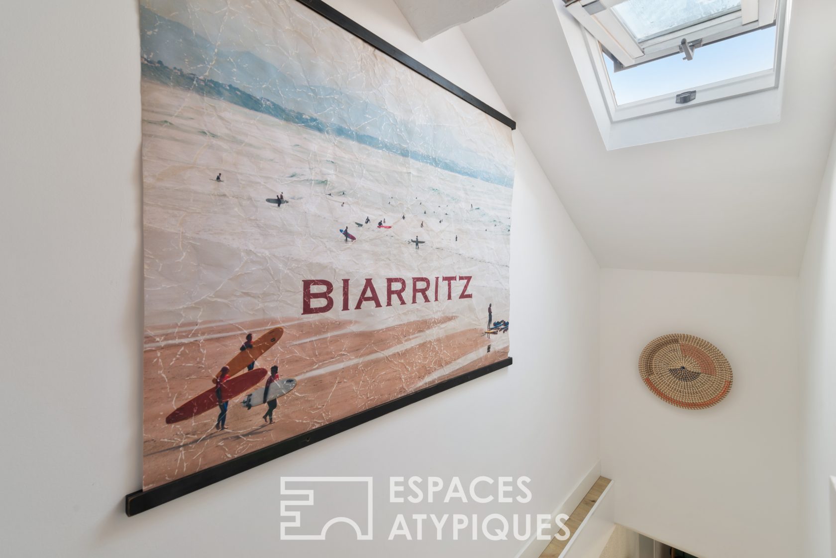 Situé à Biarritz, au coeur du quartier saint Charles et à seulement 700m de la grande plage, ce duplex de 48m² (33 m² carrez) entièrement revisité, prend place au troisième et dernier étage d’une résidence de caractère.
