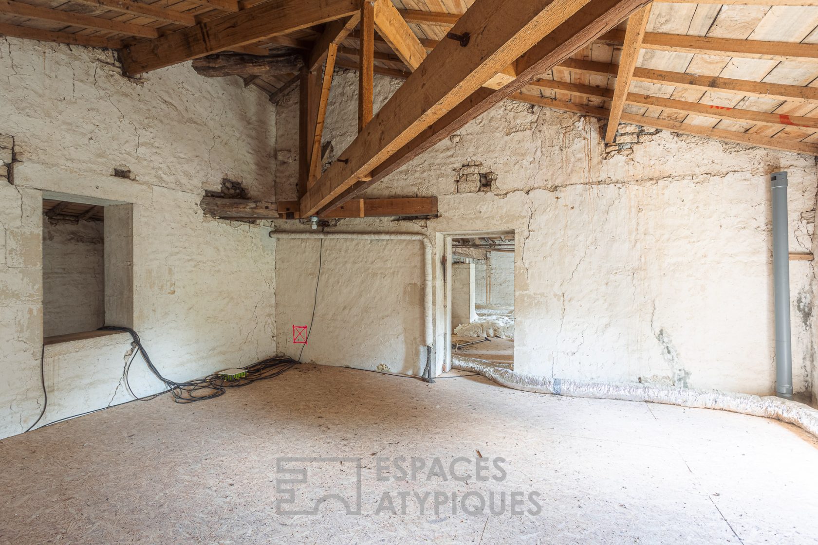 Des dépendances entourent la cour de la maison. Elles ne demandent qu’à retrouver leur flamme d’antan, après un programme de travaux à définir selon vos projets. Il est possible d’y retrouver trois box à chevaux d’époque, un poulailler avec ses petites cases insérées dans les murs en pierre, un local à cochon, un local à mouton ou chèvre, des granges, une ancienne laverie avec son château d’eau, divers locaux. C’est un potentiel d’environ 700m2 de plancher à créer au charme authentique et émouvant.