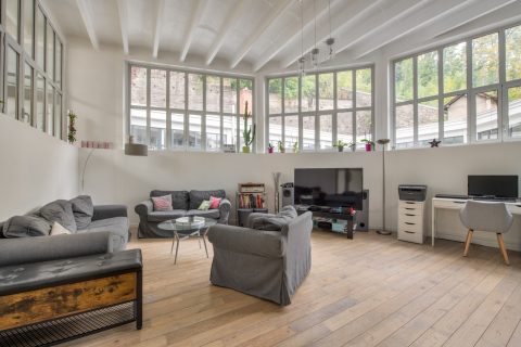 Situé sur les Quais de Saône, à Lyon 9e, ce loft de 113m2 (109m2 carrez), à la rénovation contemporaine, prend place au 1er et dernier étage d’une ancienne usine de Savon