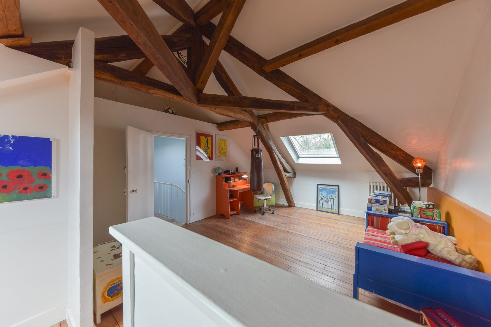 Passé l’escalier ancien en chêne, l’étage délivre une suite parentale avec douche italienne rénovée, une immense salle de jeux ou média, délivrant un bureau et une chambre équipée d’une salle de bain.