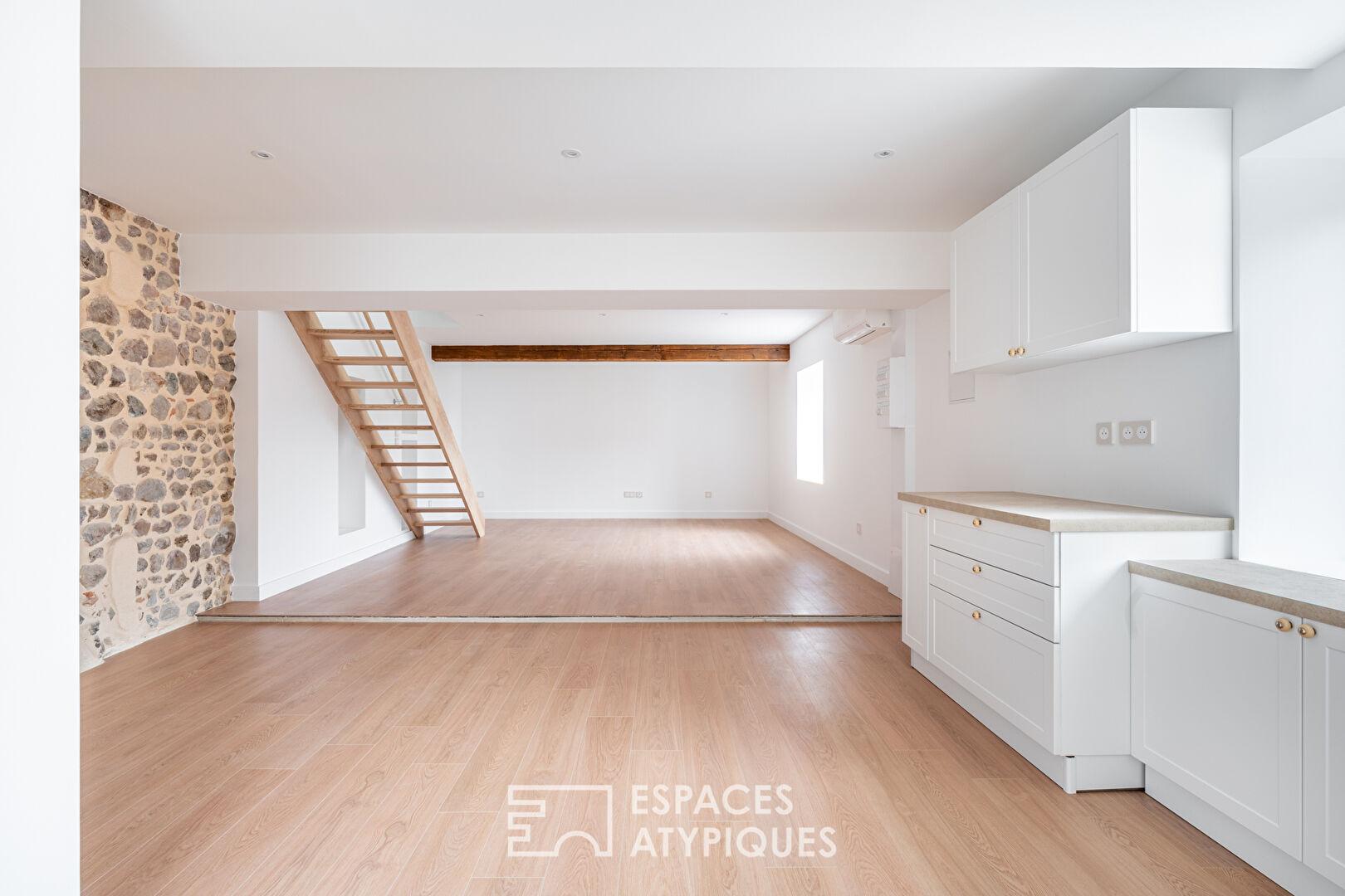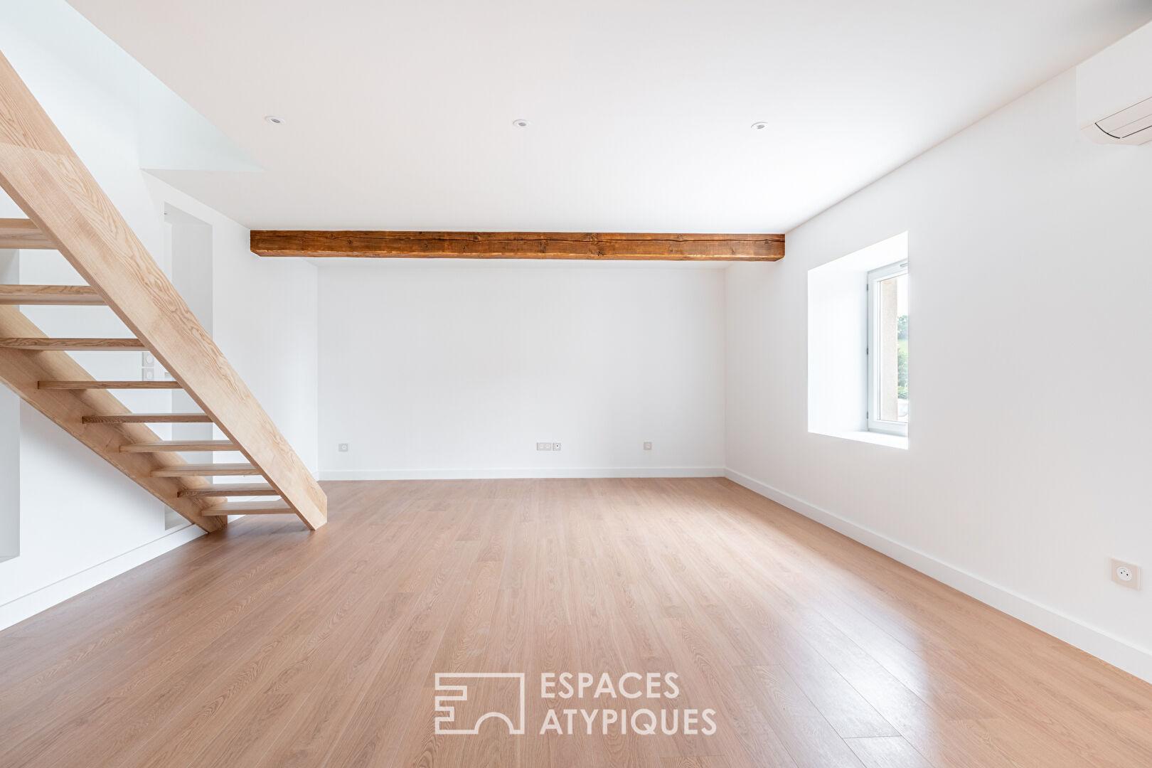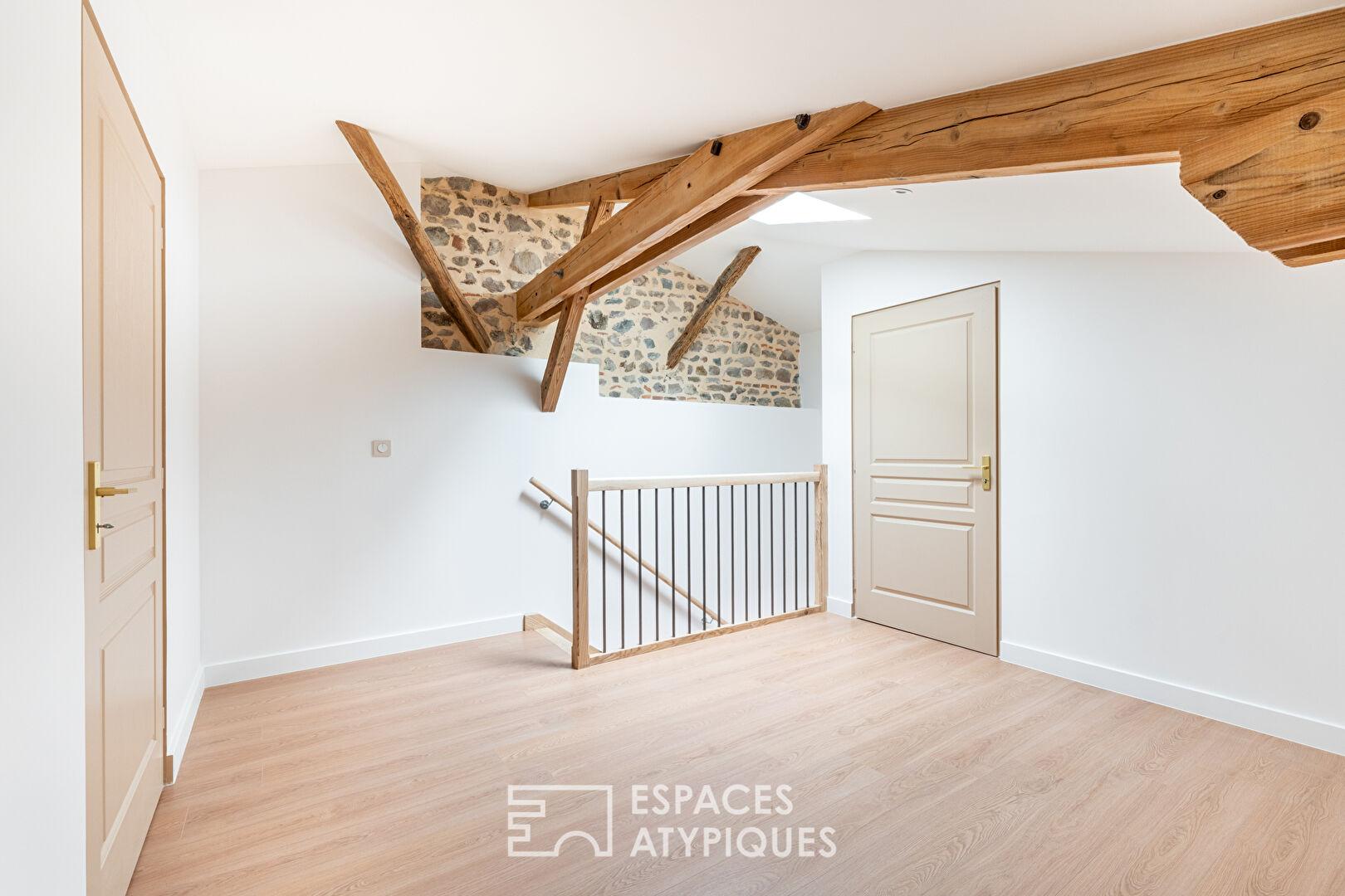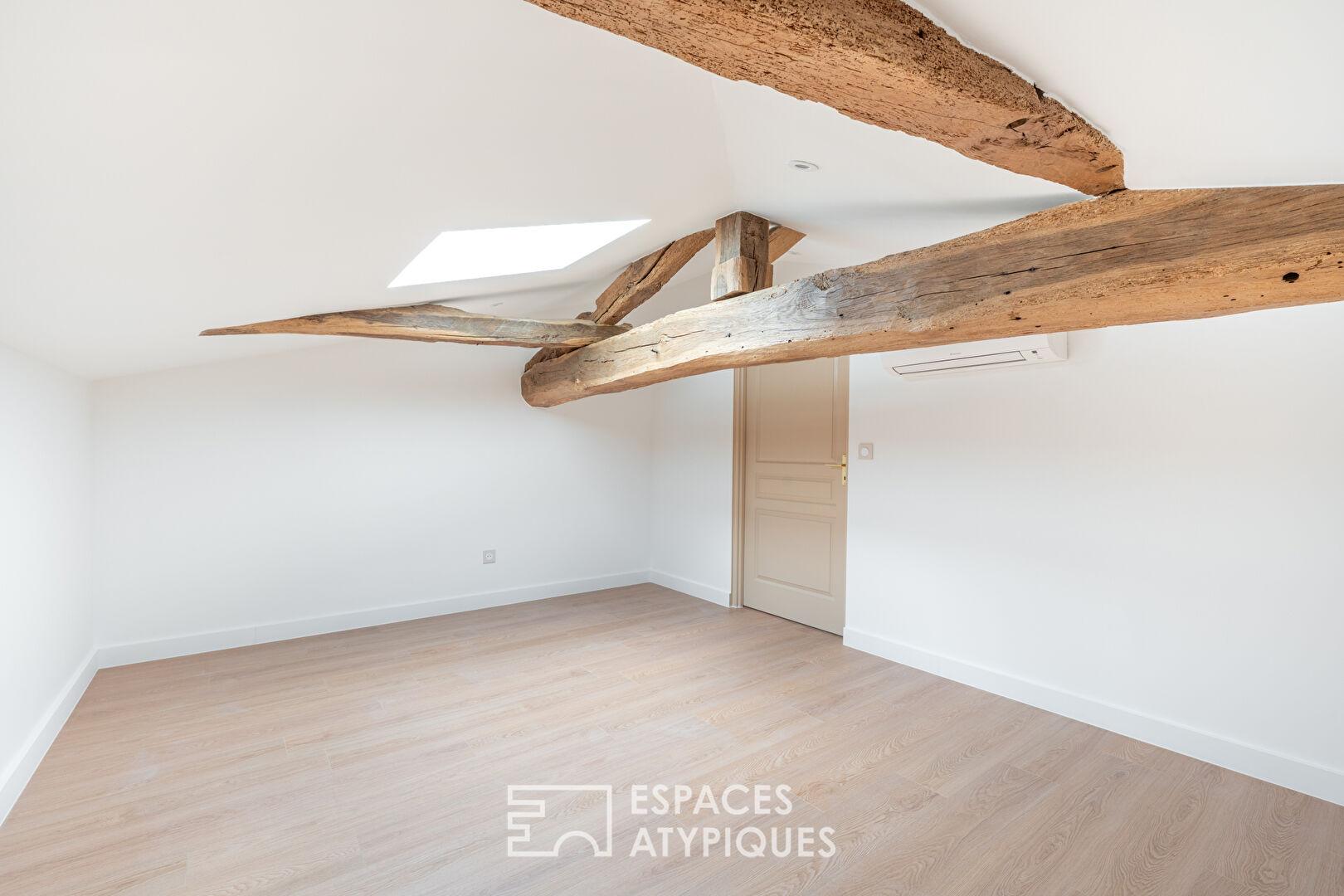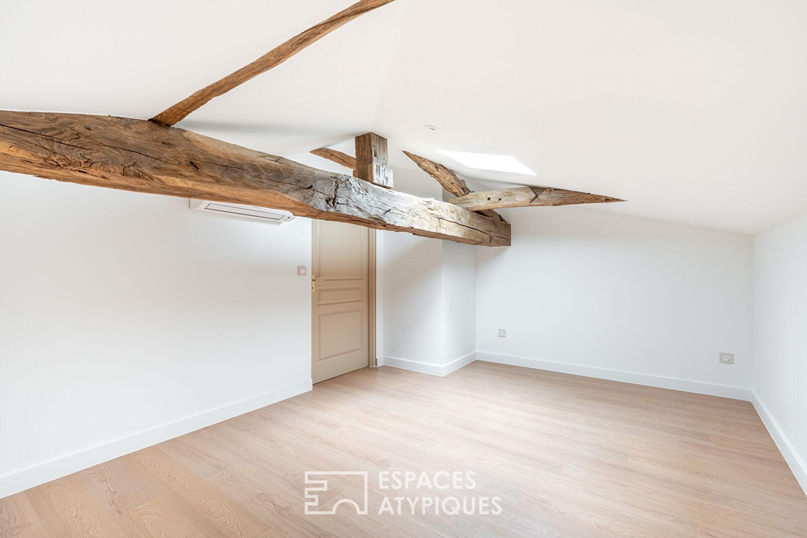 Dans un environnement paisible, cette maison de 97,15m² entièrement rénovée révèle un subtil équilibre entre le charme de l’ancien et le confort d’aujourd’hui.