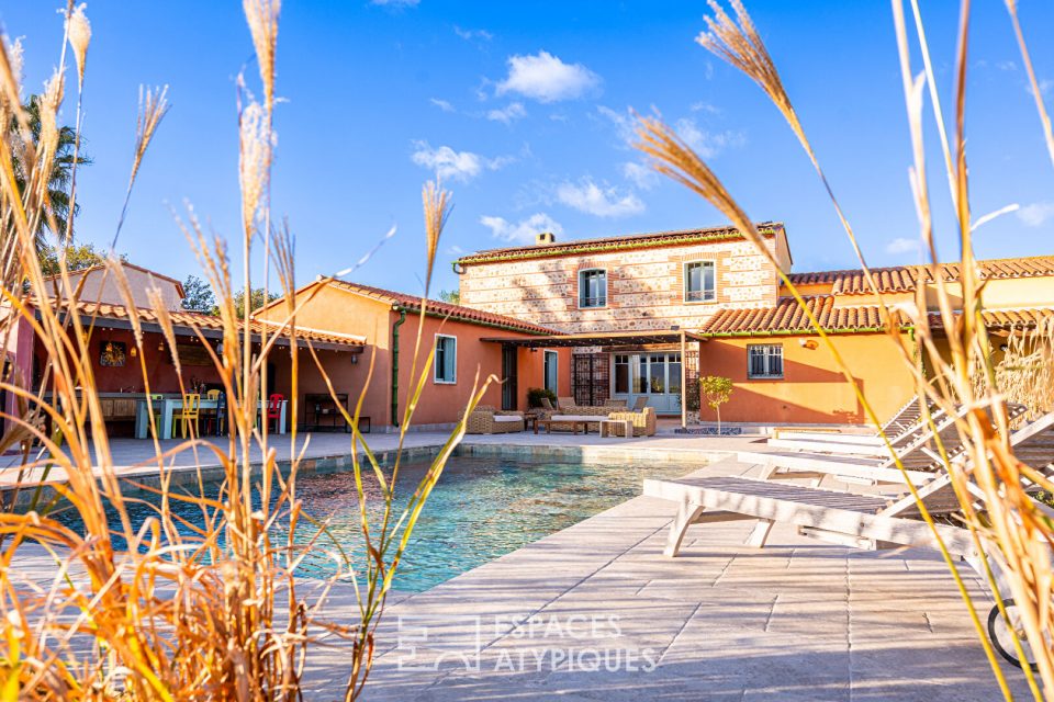 Belle villa à l’esprit hacienda méditerranéen, nichée dans son écrin de verdure à deux pas de la mer