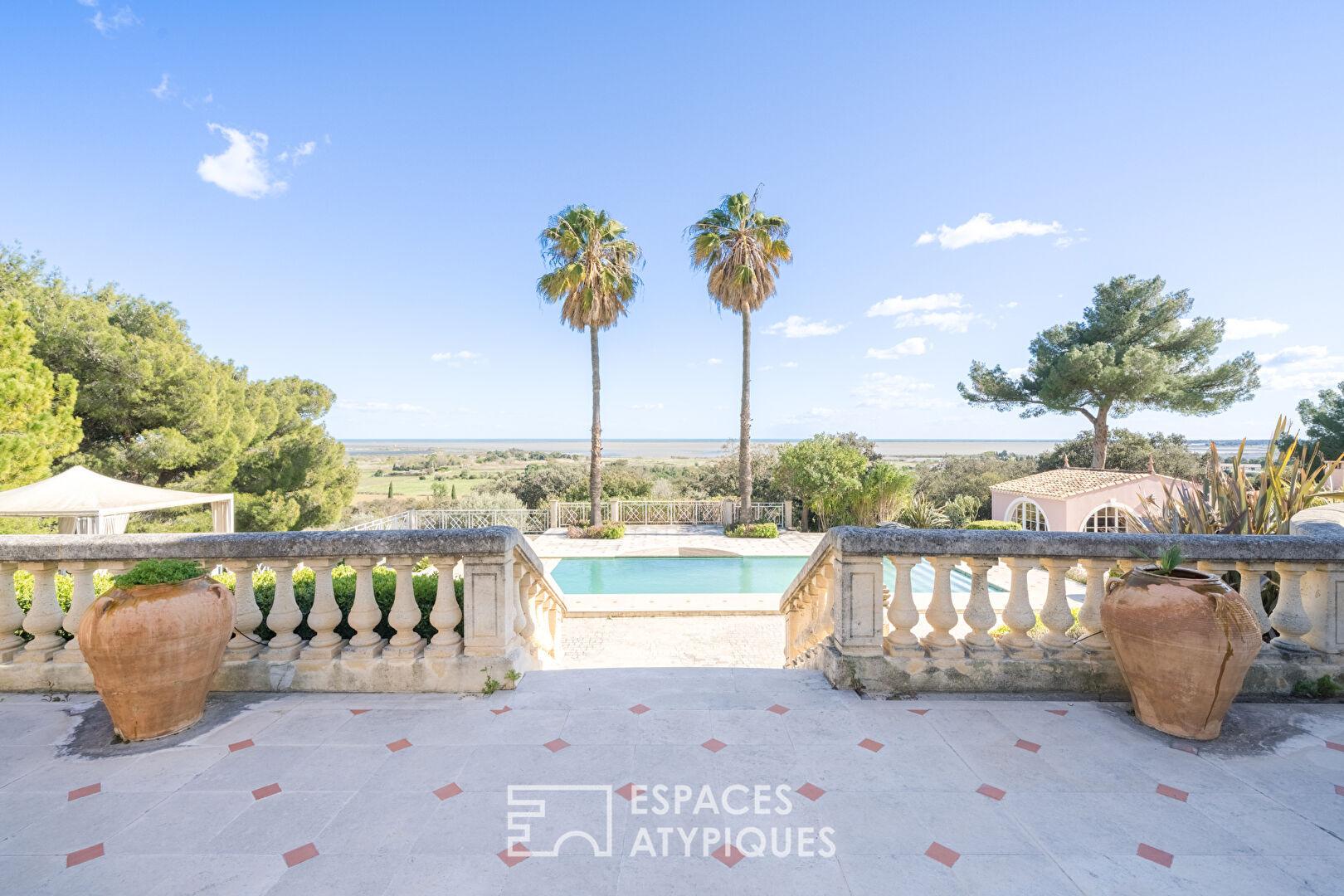 Située entre Montpellier et Sète, cette propriété rare déploie tout son caractère dans un environnement naturel préservé de 2,5 hectares, face à la mer, offrant une vue panoramique à couper le souffle.