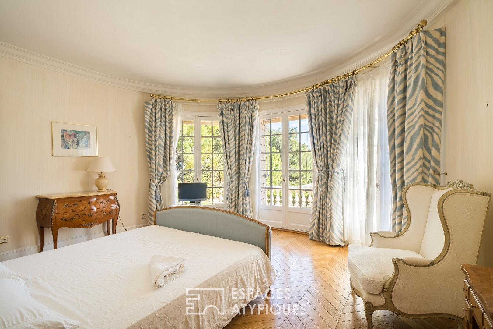 Le parc, soigneusement entretenu, offre un écrin de verdure rare, entre intimité et ouverture sur la mer.