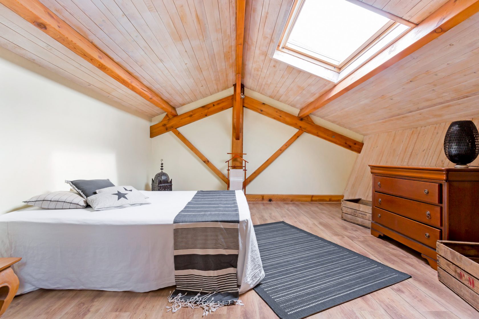 Avec son grand palier aménagé en petit salon, le premier étage promet de belles possibilités d’aménagement. Une chambre de belle taille de 21 m2 est aujourd’hui exploitée, avec la perspective d’agrandir la surface habitable en se réappropriant le grenier.